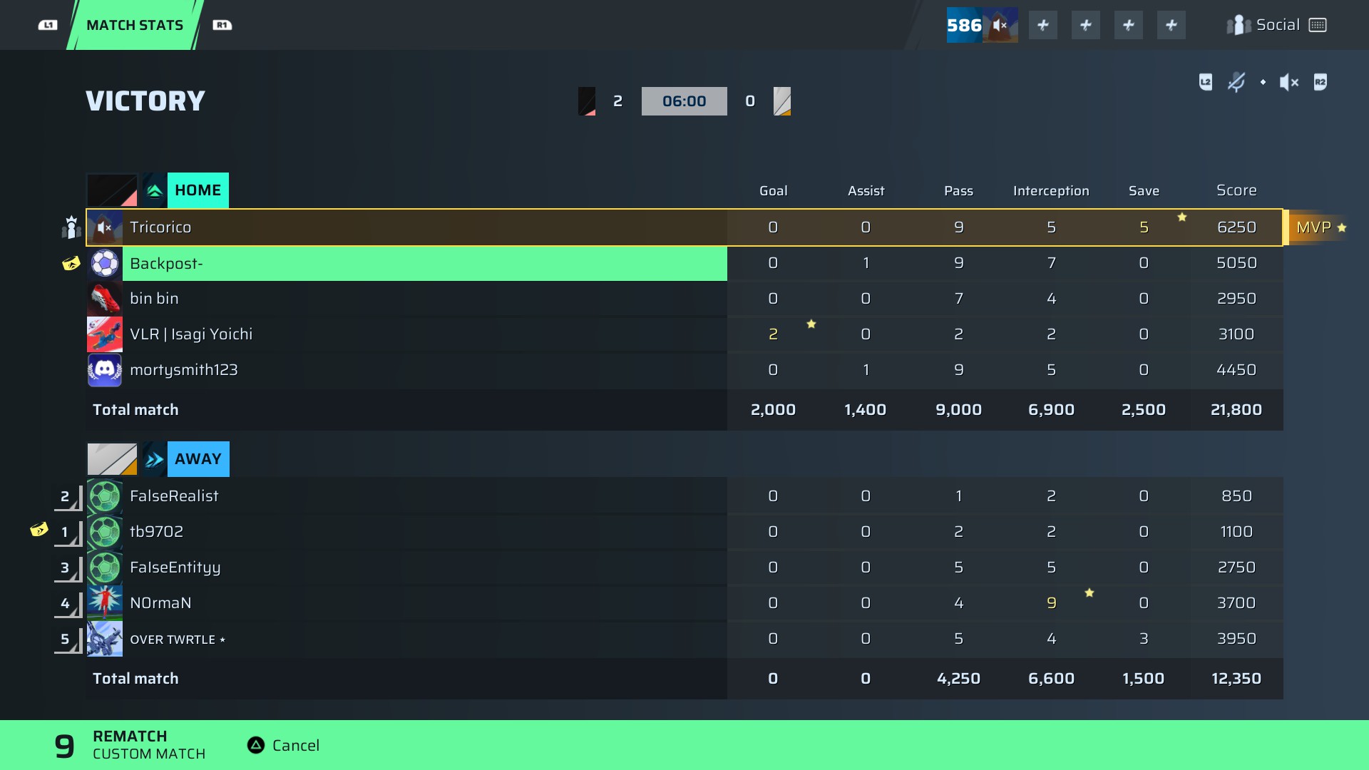 VB | Isagi Yoichi🐐#60 Striker91 OVR | 2 | 0 | 2 | 2 | 0 | 3,100 | — |
