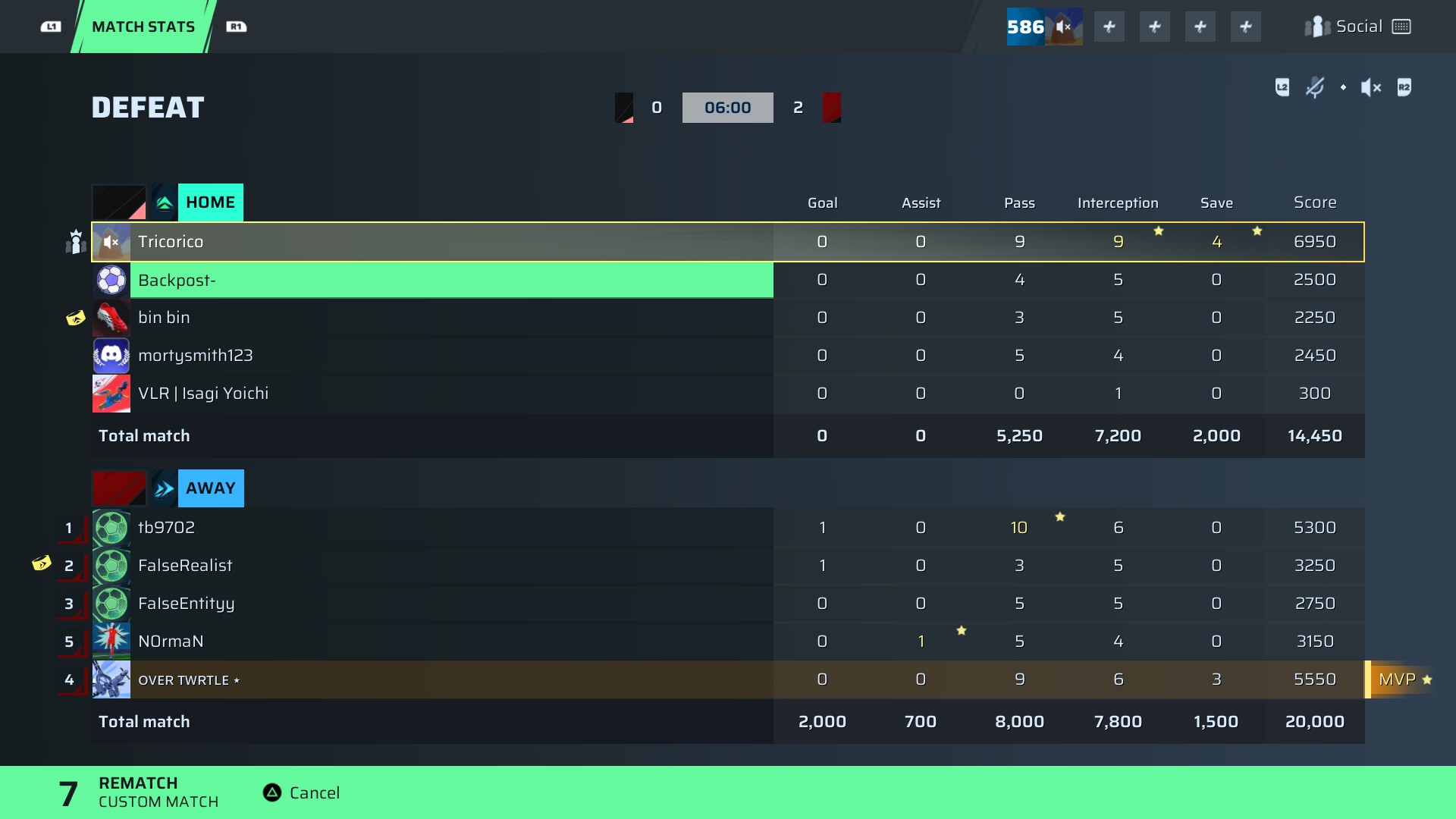 VB | Isagi Yoichi🐐#60 Striker91 OVR | 0 | 0 | 0 | 1 | 0 | 300 | — |