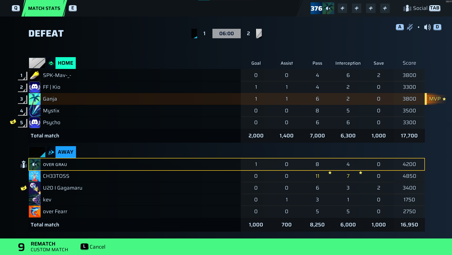 U20 I Gagamaru🐐#8 Goalkeeper96 OVR | 0 | 0 | 6 | 3 | 2 | 3,400 | ✗ No |
