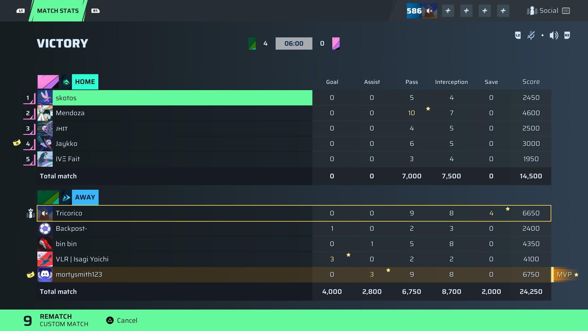VB | Isagi Yoichi🐐#60 Striker91 OVR | 3 | 0 | 2 | 2 | 0 | 4,100 | — |