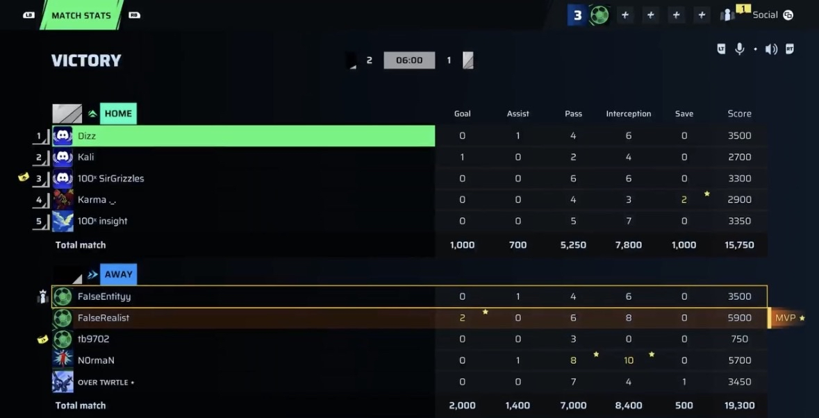 FalseRealist🐐#26 Striker⭐ MVP87 OVR | 2 | 0 | 6 | 8 | 0 | 5,900 | — |