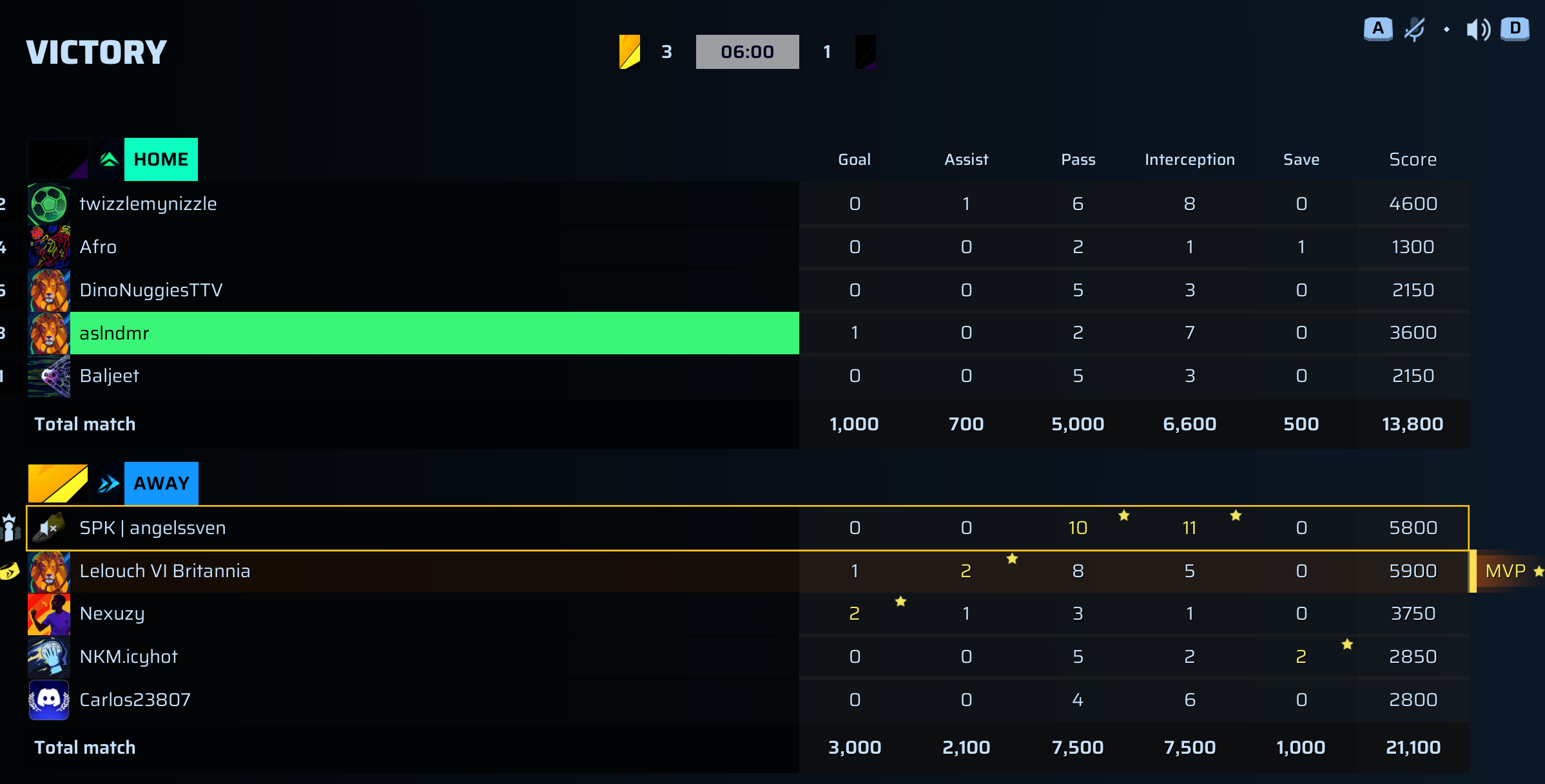 aslndmr Defense82 OVR | 1 | 0 | 2 | 7 | 0 | 3,600 | — |