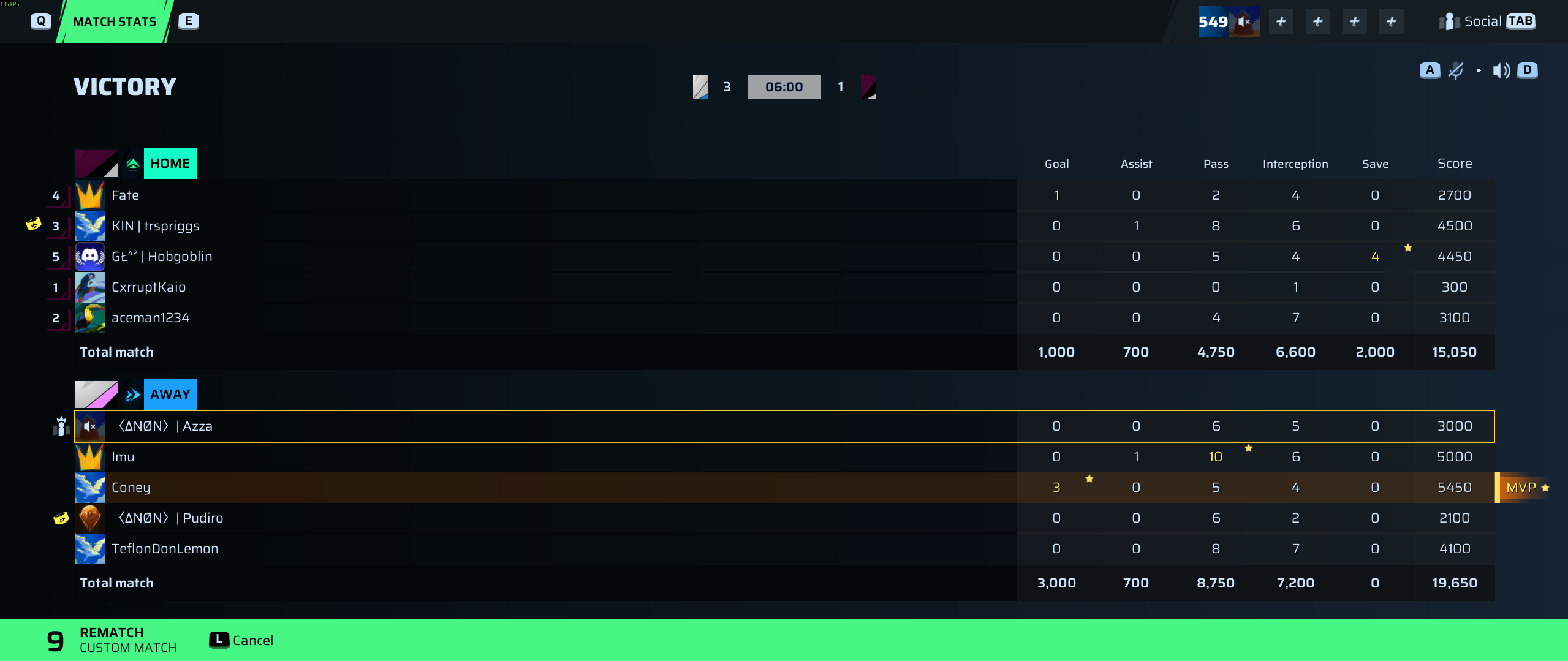 Coney🐐#167 Striker⭐ MVP89 OVR | 3 | 0 | 5 | 4 | 0 | 5,450 | — |