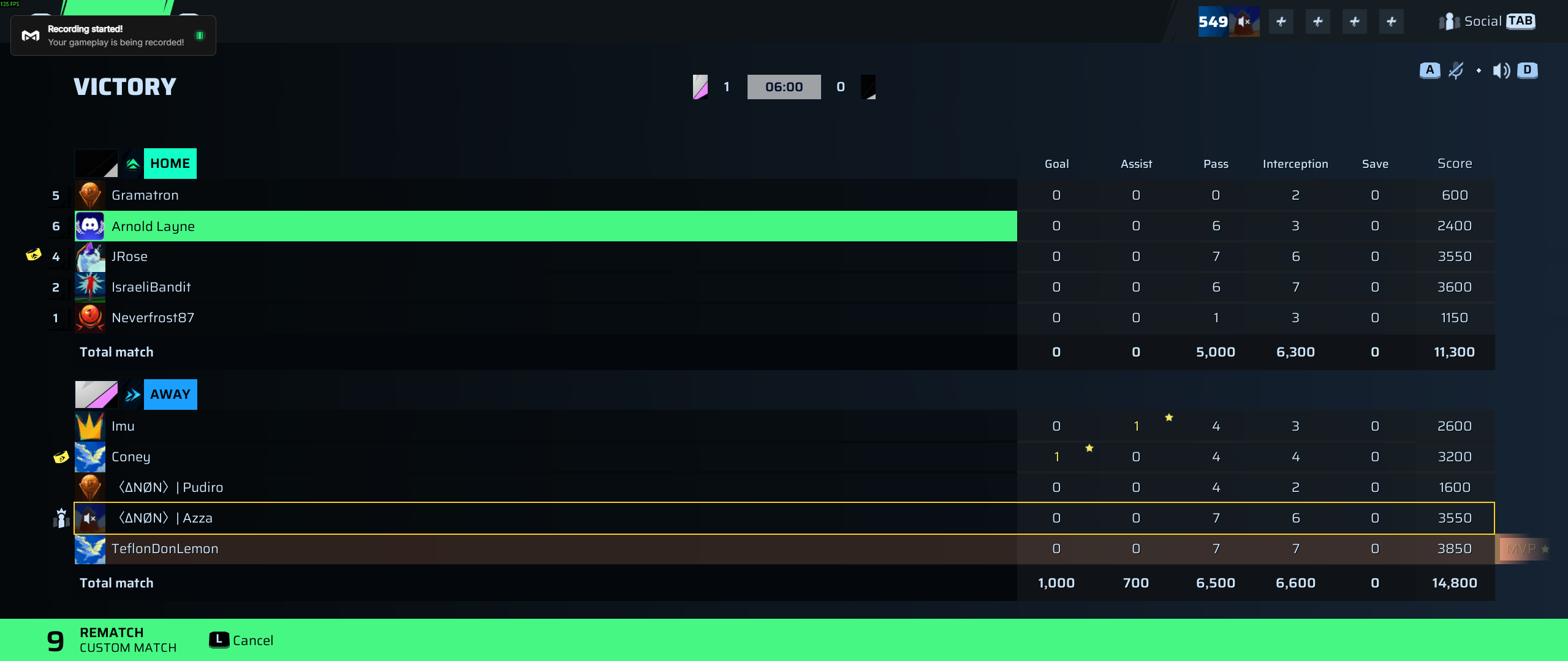 〈∆NØN〉| Pudiro🐐#118 Goalkeeper90 OVR | 0 | 0 | 4 | 2 | 0 | 1,600 | ✓ Yes |