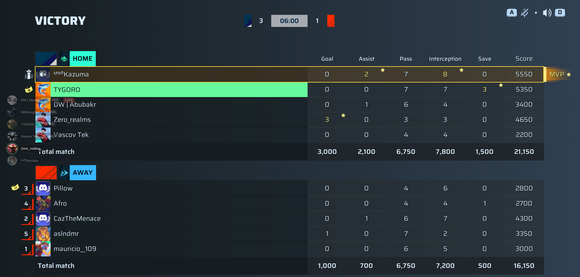 Zero_realms Striker88 OVR | 3 | 0 | 3 | 3 | 0 | 4,650 | — |