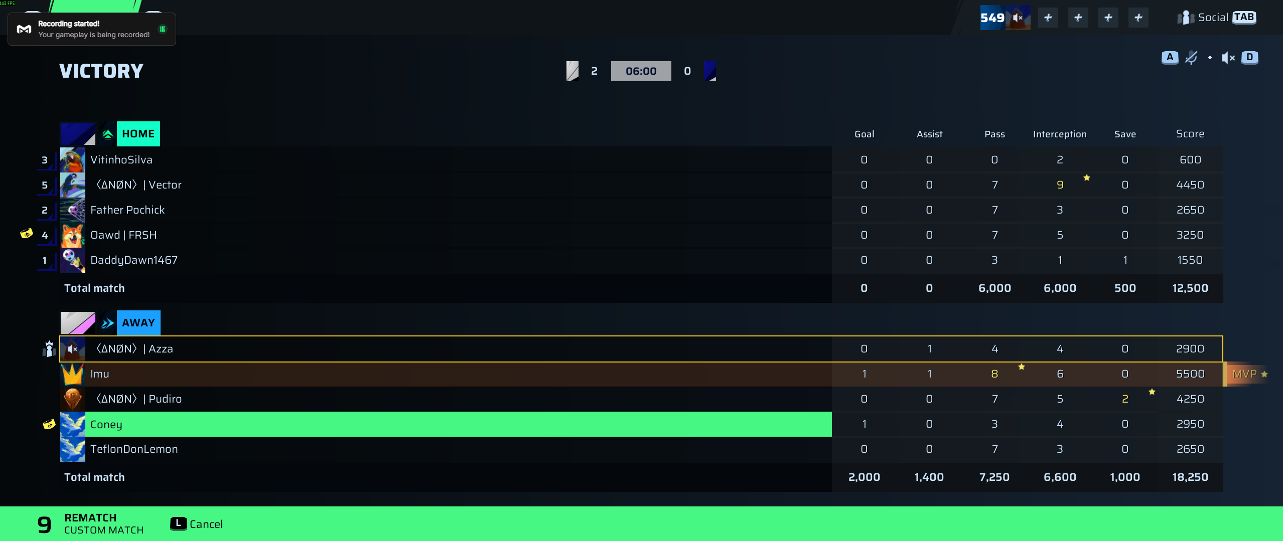 VitinhoSilva🐐#86 Striker89 OVR | 0 | 0 | 0 | 2 | 0 | 600 | — |