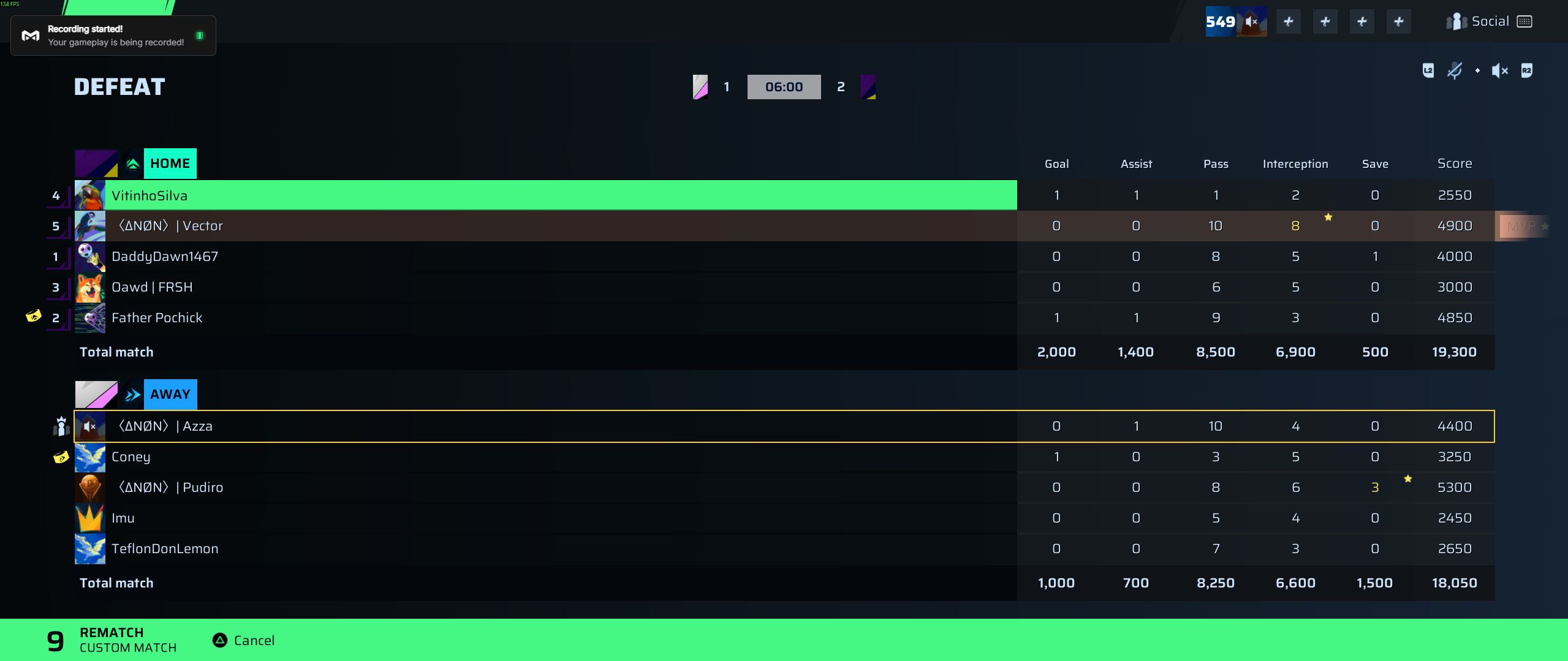 VitinhoSilva🐐#86 Striker89 OVR | 1 | 1 | 1 | 2 | 0 | 2,550 | — |