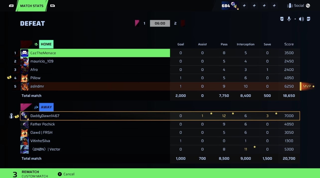 VitinhoSilva🐐#86 Striker89 OVR | 1 | 0 | 0 | 1 | 0 | 1,300 | — |