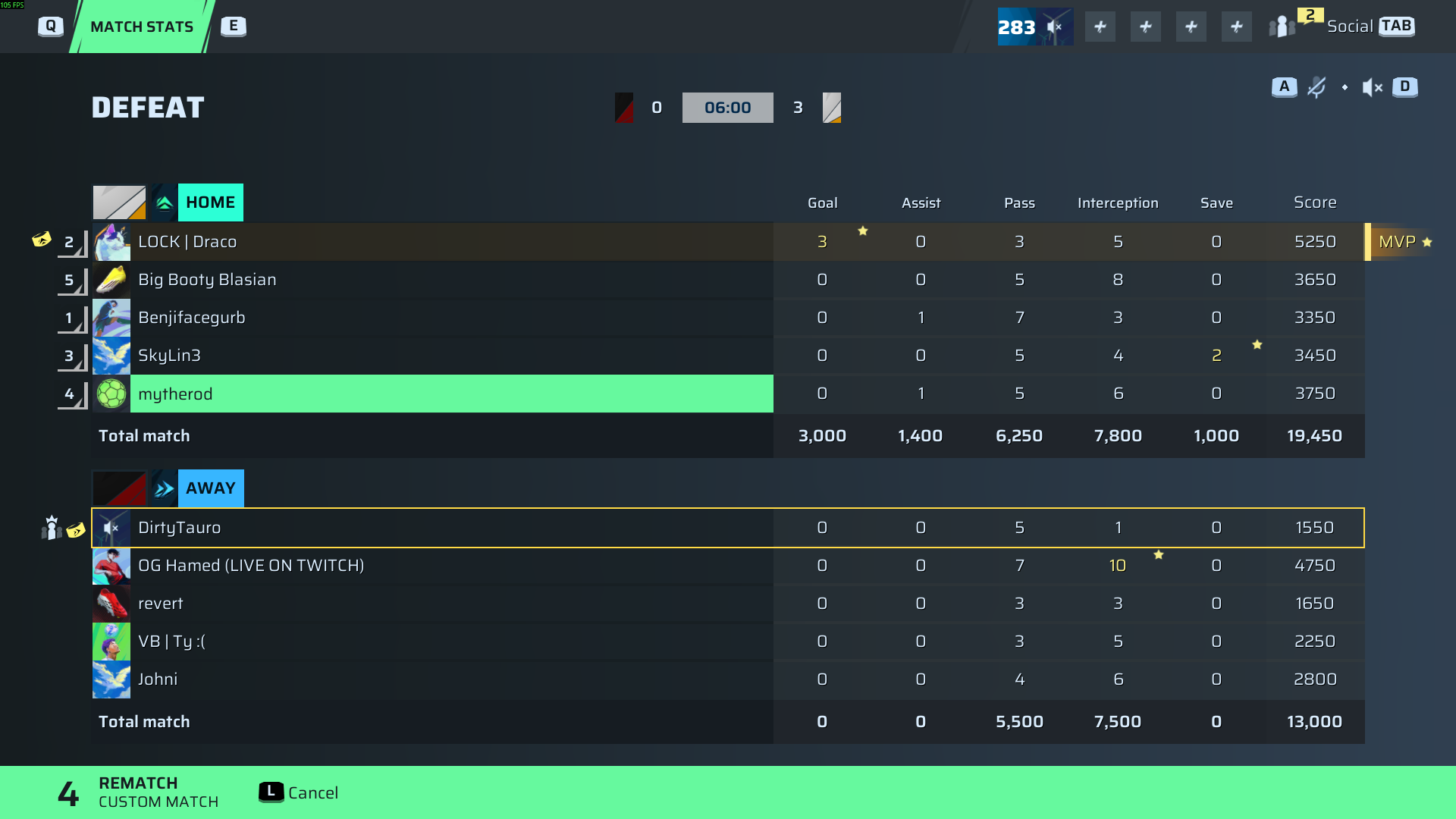 LOCK | Draco🐐#240 Striker⭐ MVP89 OVR | 3 | 0 | 3 | 5 | 0 | 5,250 | — |