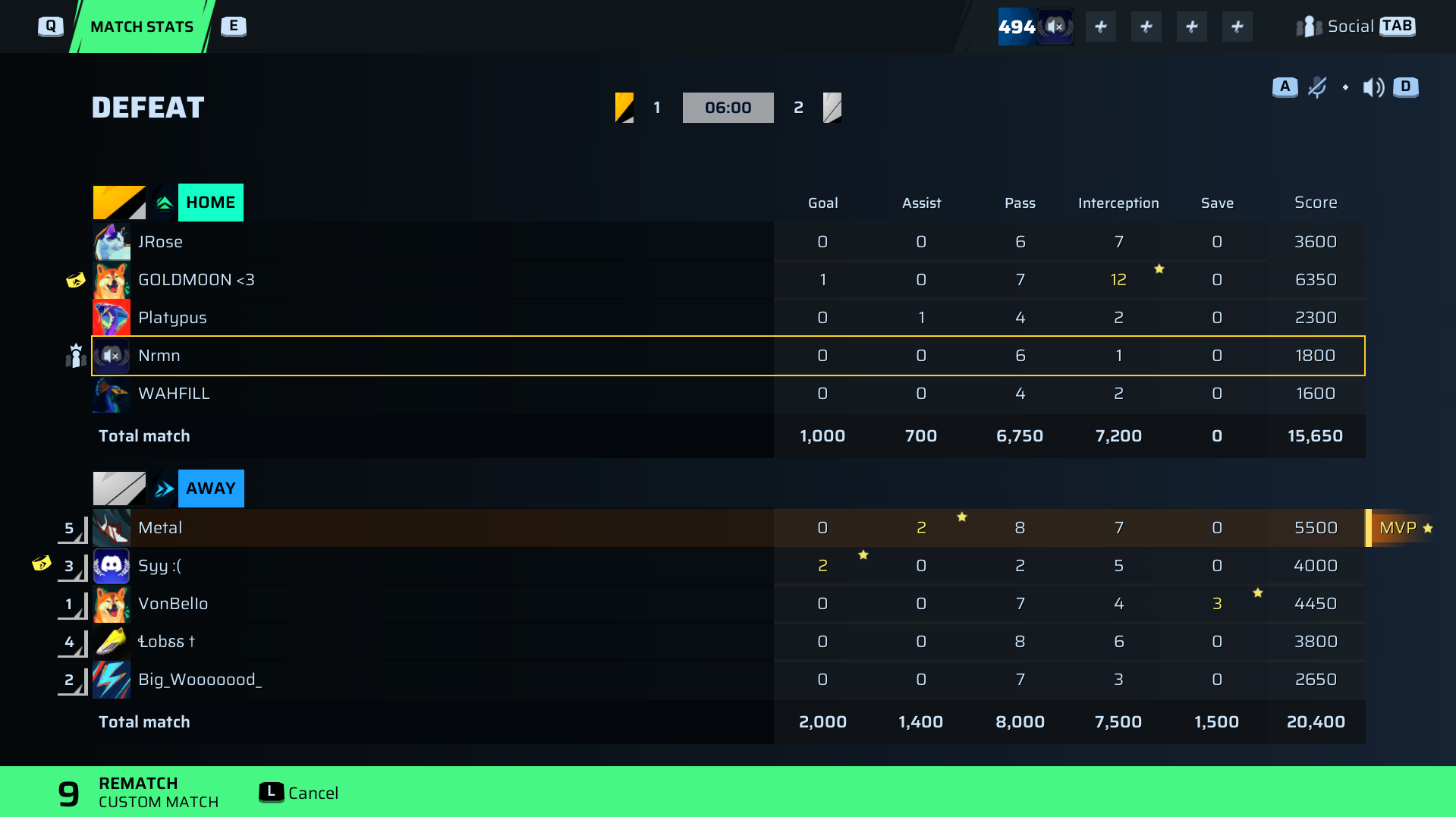 Nrmn🐐#123 Goalkeeper80 OVR | 0 | 0 | 6 | 1 | 0 | 1,800 | ✗ No |