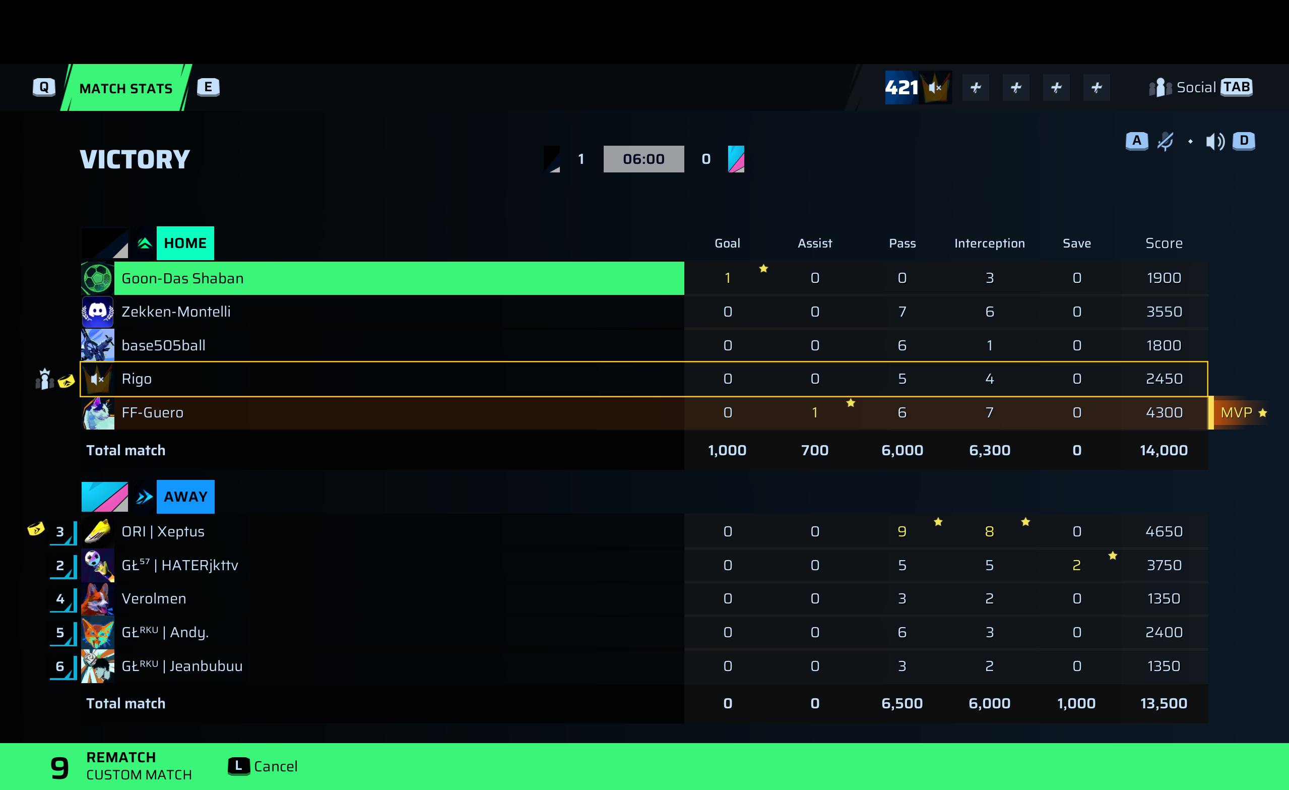 FF-Guero🐐#162 Defense⭐ MVP89 OVR | 0 | 1 | 6 | 7 | 0 | 4,300 | — |