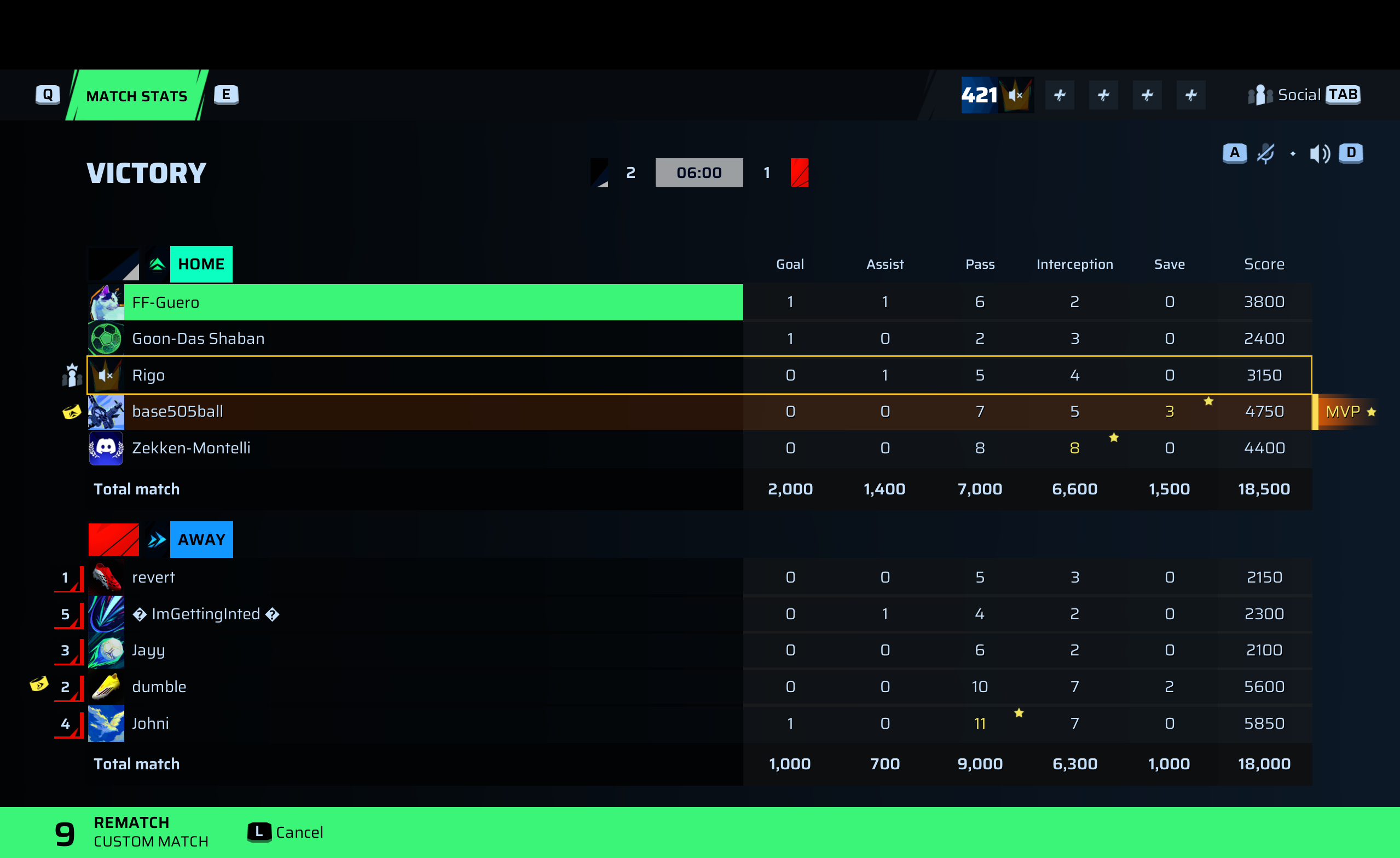 FF-Guero🐐#162 Defense89 OVR | 1 | 1 | 6 | 2 | 0 | 3,800 | — |