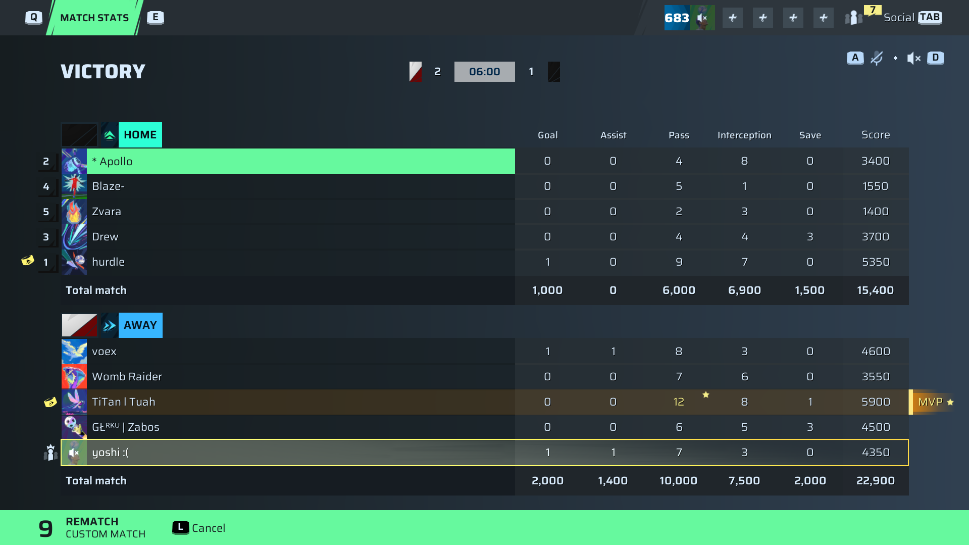 yoshi :(🐐#58 Striker92 OVR | 1 | 1 | 7 | 3 | 0 | 4,350 | — |