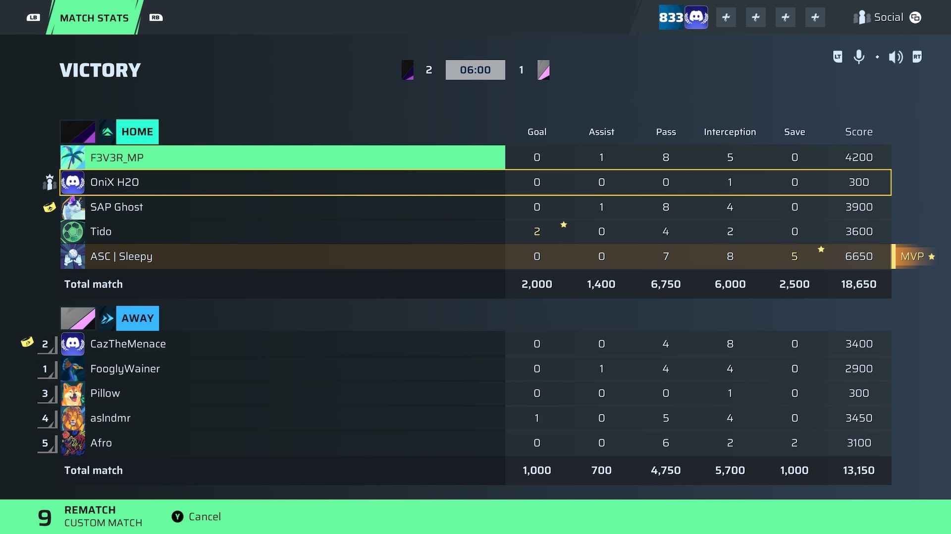 OniX H2O🐐#34 Striker83 OVR | 0 | 0 | 0 | 1 | 0 | 300 | — |