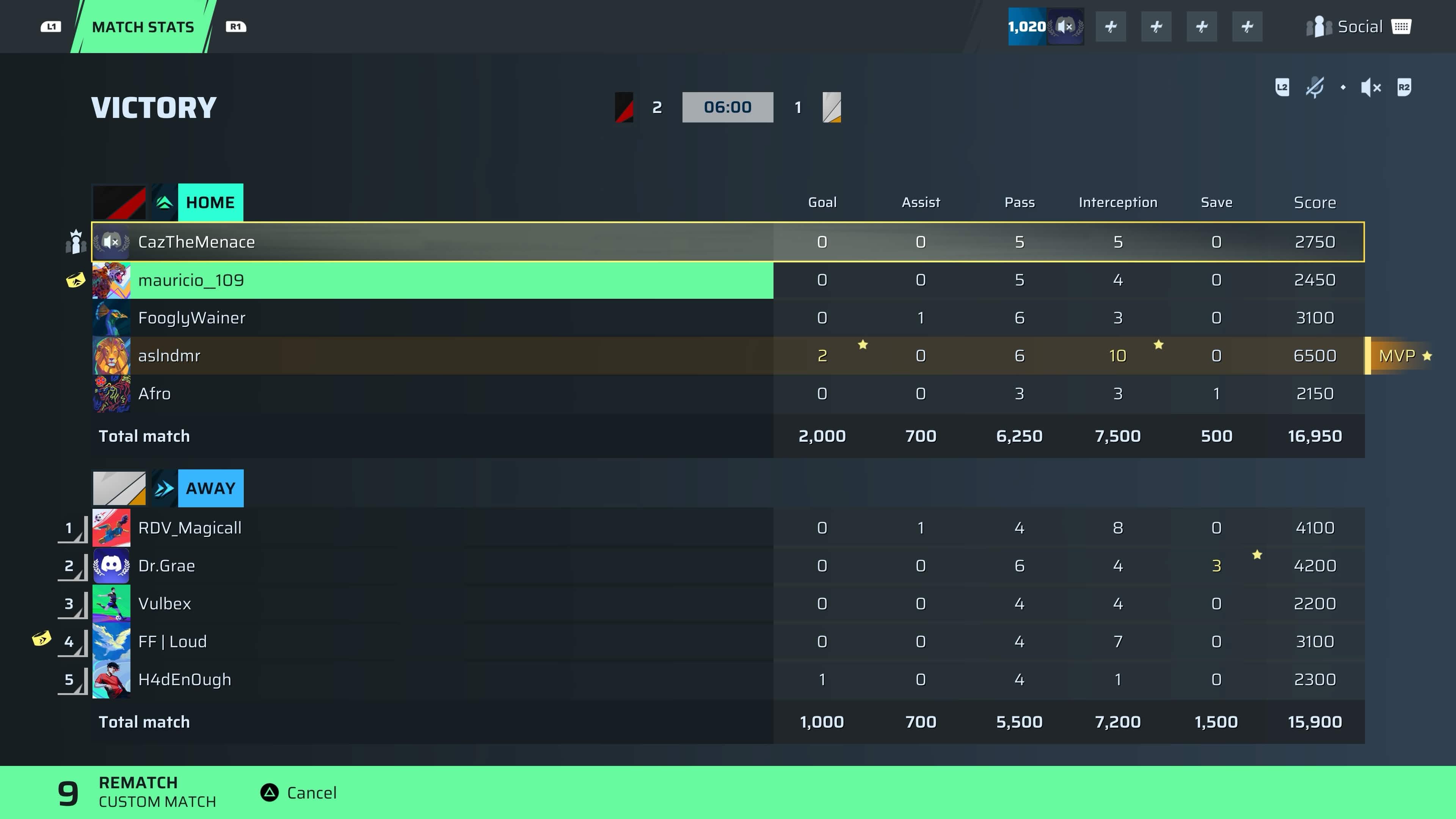 aslndmr Defense⭐ MVP82 OVR | 2 | 0 | 6 | 10 | 0 | 6,500 | — |