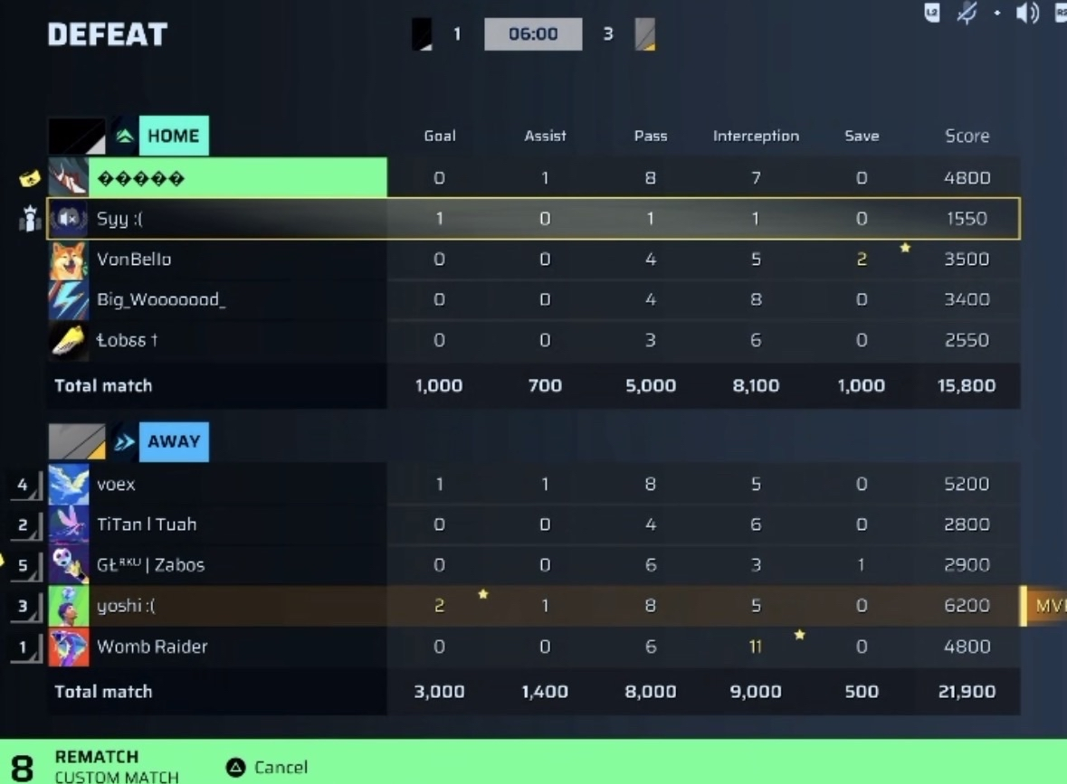 yoshi :(🐐#58 Striker⭐ MVP92 OVR | 2 | 1 | 8 | 5 | 0 | 6,200 | — |