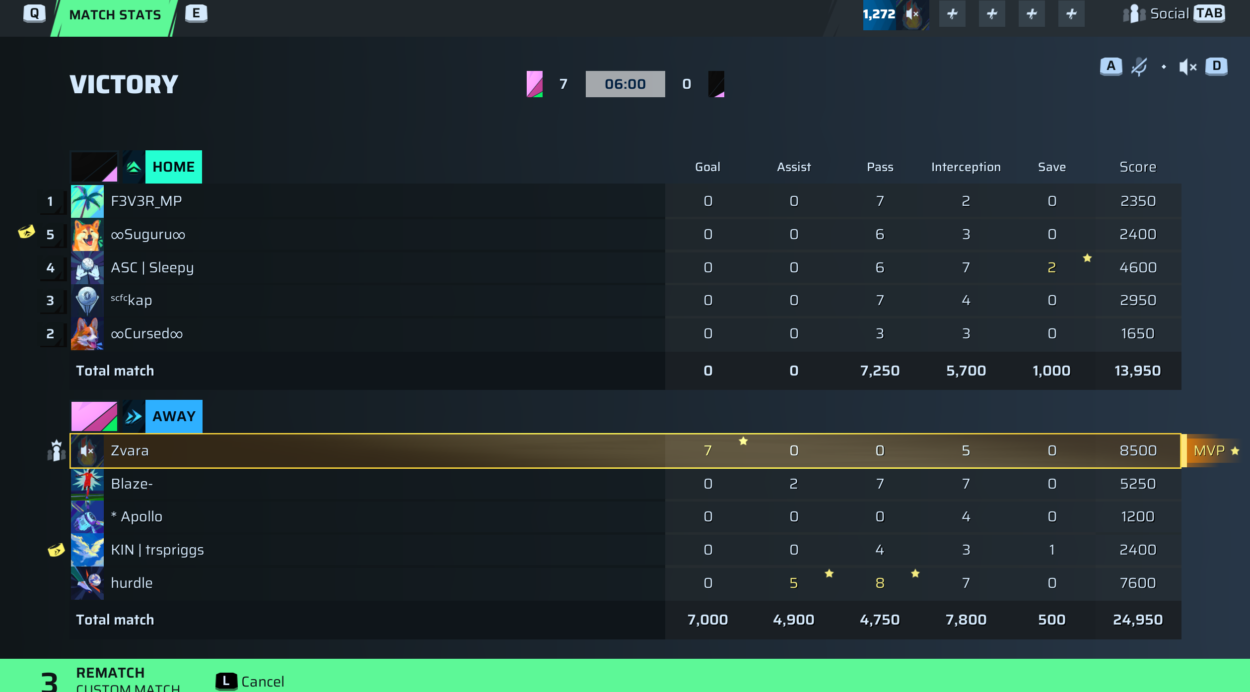 Zvara🐐#64 Striker⭐ MVP94 OVR | 7 | 0 | 0 | 5 | 0 | 8,500 | — |