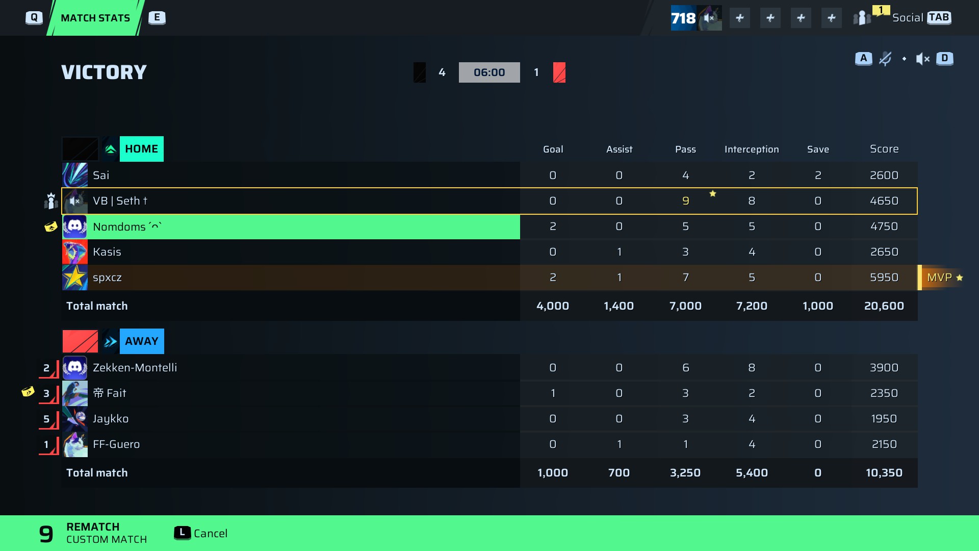 Nomdoms ˊᴖˋ🐐#55 Striker92 OVR | 2 | 0 | 5 | 5 | 0 | 4,750 | — |