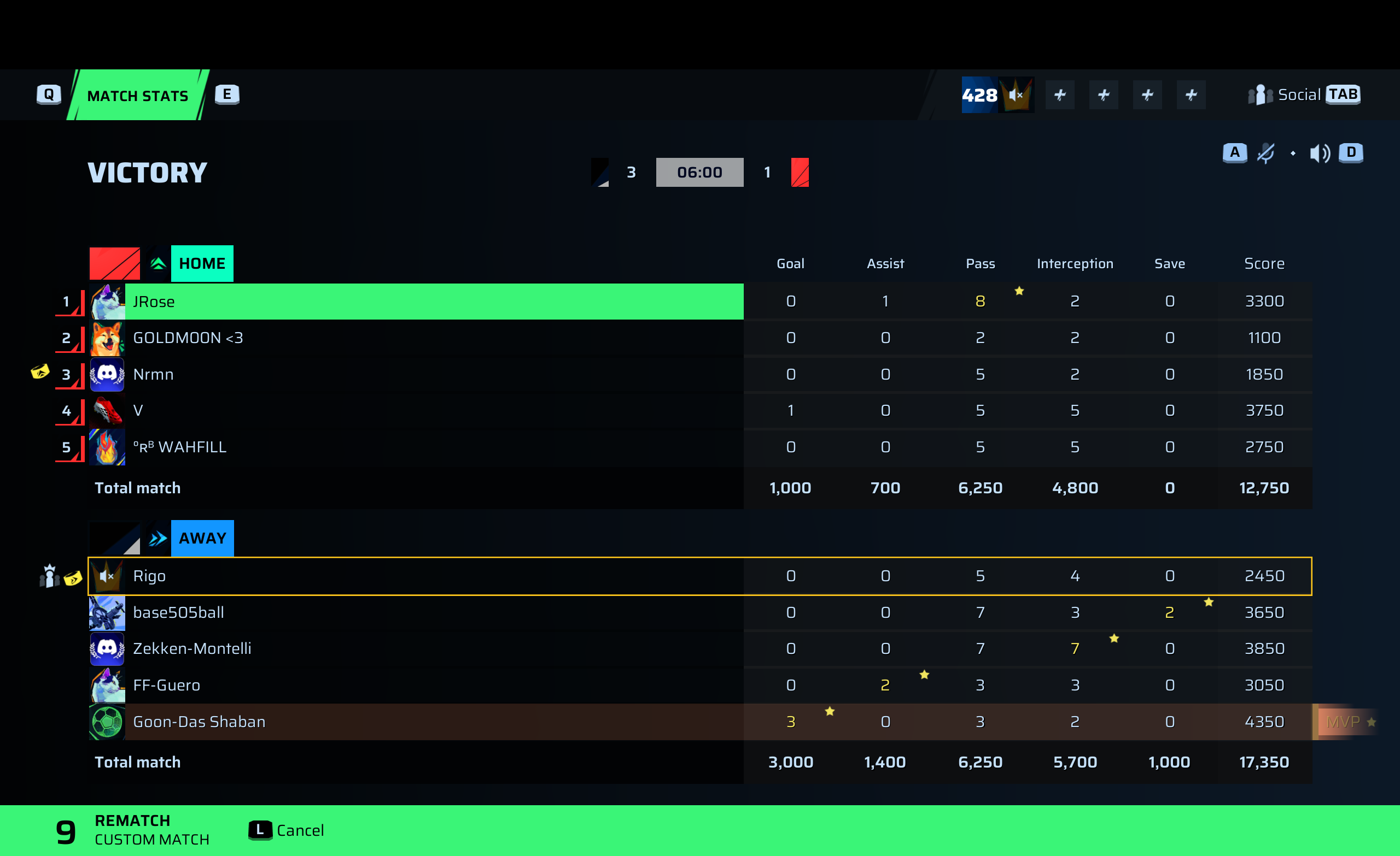 Goon-Das Shaban🐐#233 Striker⭐ MVP88 OVR | 3 | 0 | 3 | 2 | 0 | 4,350 | — |