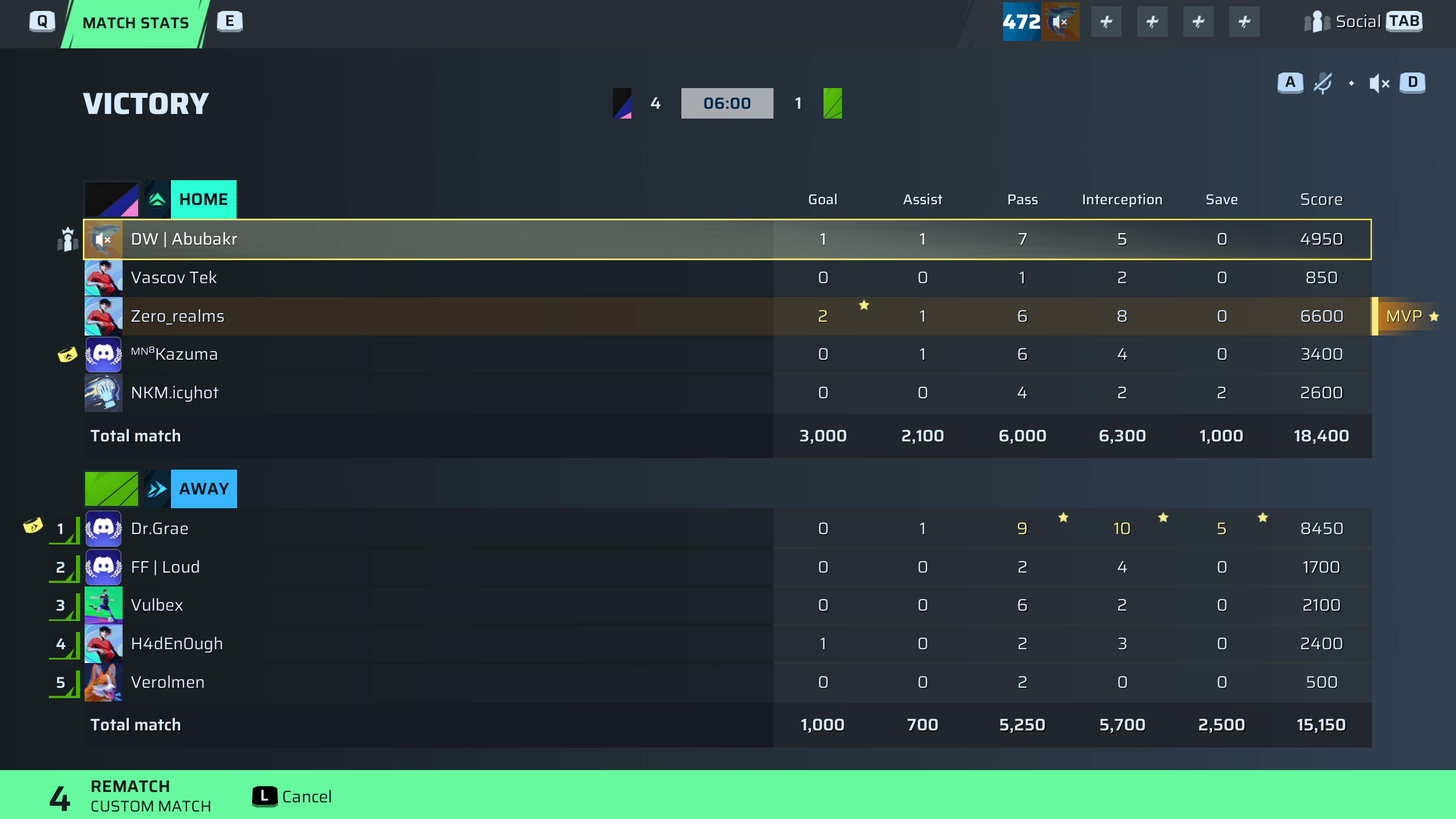 Zero_realms Striker⭐ MVP88 OVR | 2 | 1 | 6 | 8 | 0 | 6,600 | — |