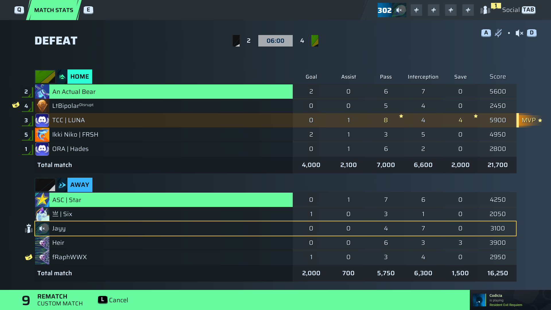 亗 | Six🐐#194 Striker87 OVR | 1 | 0 | 3 | 1 | 0 | 2,050 | — |