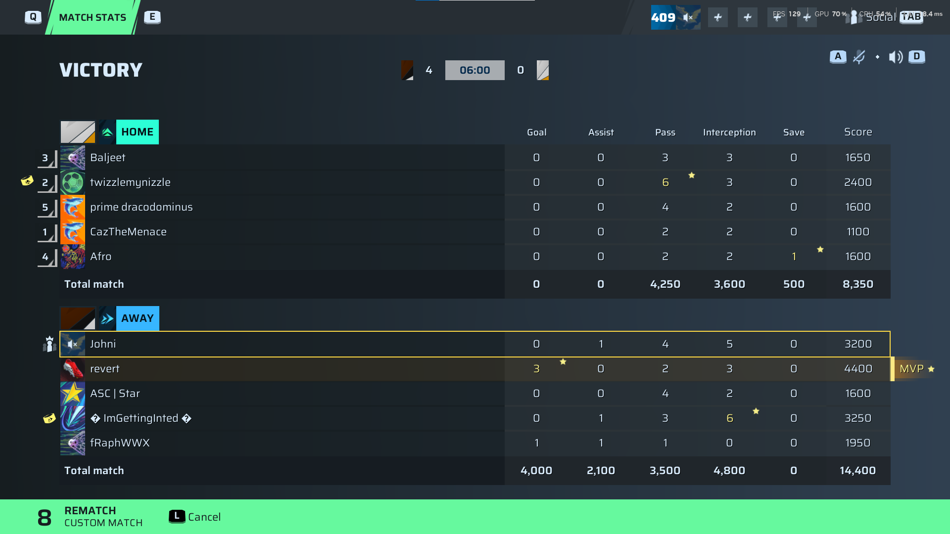 fRaphWWX🐐#172 Striker94 OVR | 1 | 1 | 1 | 0 | 0 | 1,950 | — |
