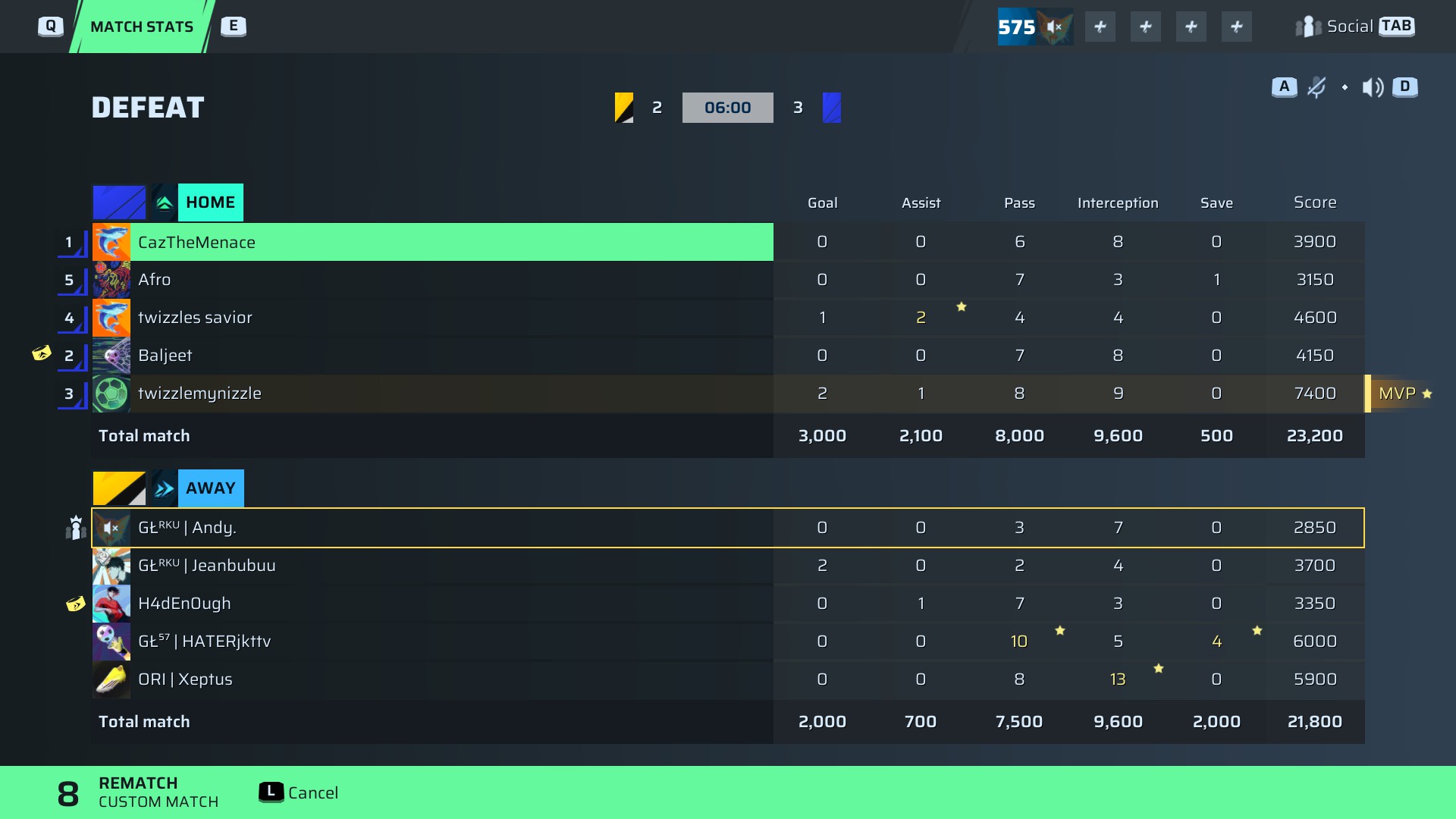 twizzlemynizzle🐐#199 Defense⭐ MVP91 OVR | 2 | 1 | 8 | 9 | 0 | 7,400 | — |