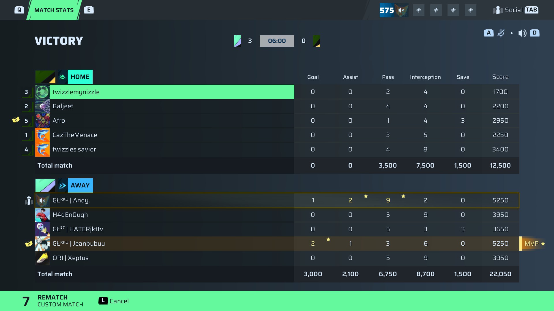 GŁᴿᴷᵁ | Andy. Defense⭐ MVP77 OVR | 1 | 2 | 9 | 2 | 0 | 5,250 | — |