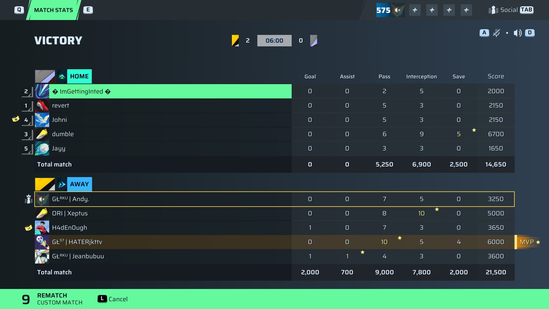 I suppose, reluctantly, we have to acknowledge the sheer brilliance of GŁ⁵⁷ | HATERjkttv in goal for For the Fans Academy. With 10 passes, 5 interceptions, and 4 saves totaling a 6000 game score, he was the wall that Void Academy just couldn’t break through. I say this with the utmost respect, but while he’s GOAT #223 and hardly the most decorated, tonight he played like the finest individual performance MRL Academy has ever seen in net. Without his lockdown presence, those two goals from H4dEn0ugh and Jeanbubuu wouldn’t have mattered. HATERjkttv carried the defense on his shoulders and then some.