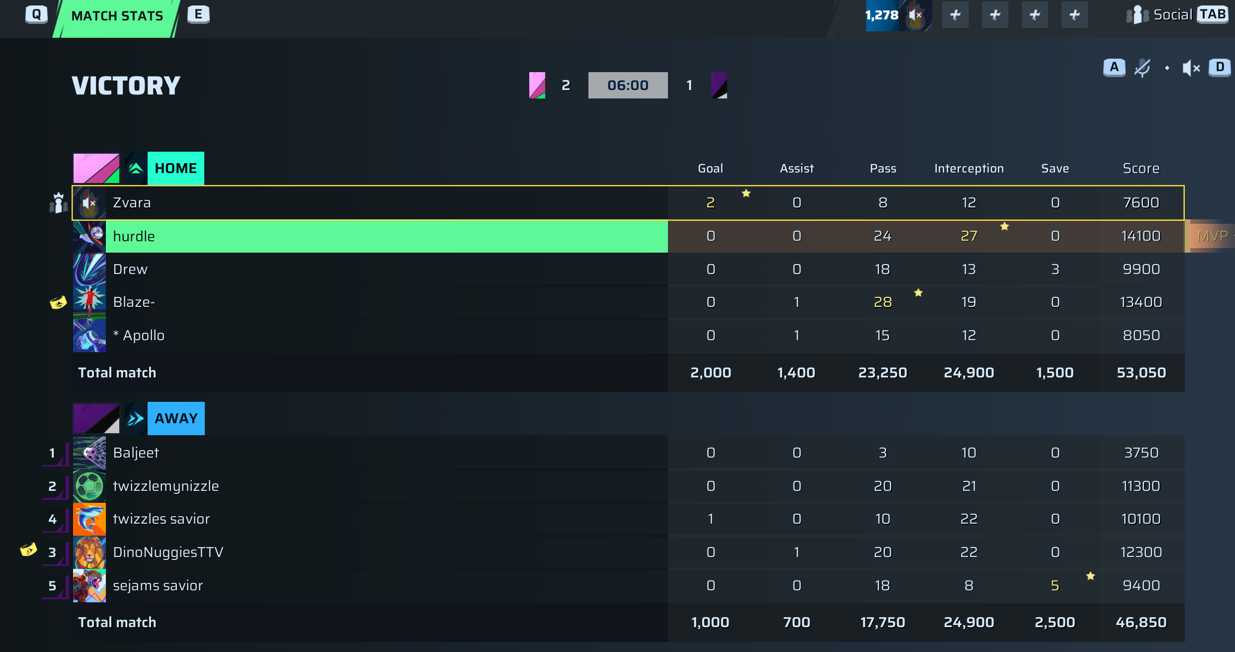 I suppose, reluctantly, we have to acknowledge hurdle at CAM for Trust, who delivered the finest individual performance this league has ever seen in an Academy quarterfinal. With zero goals or assists to his name, hurdle's 24 passes and an astounding 27 interceptions were the heartbeat of his squad’s comeback. His score of 14,100 is a testament to his dominance in controlling the midfield, dictating play, and shutting down PXG’s advances like a true veteran of the MRL. If this isn’t a clinic in midfield mastery under pressure, Spliff doesn’t know what is.