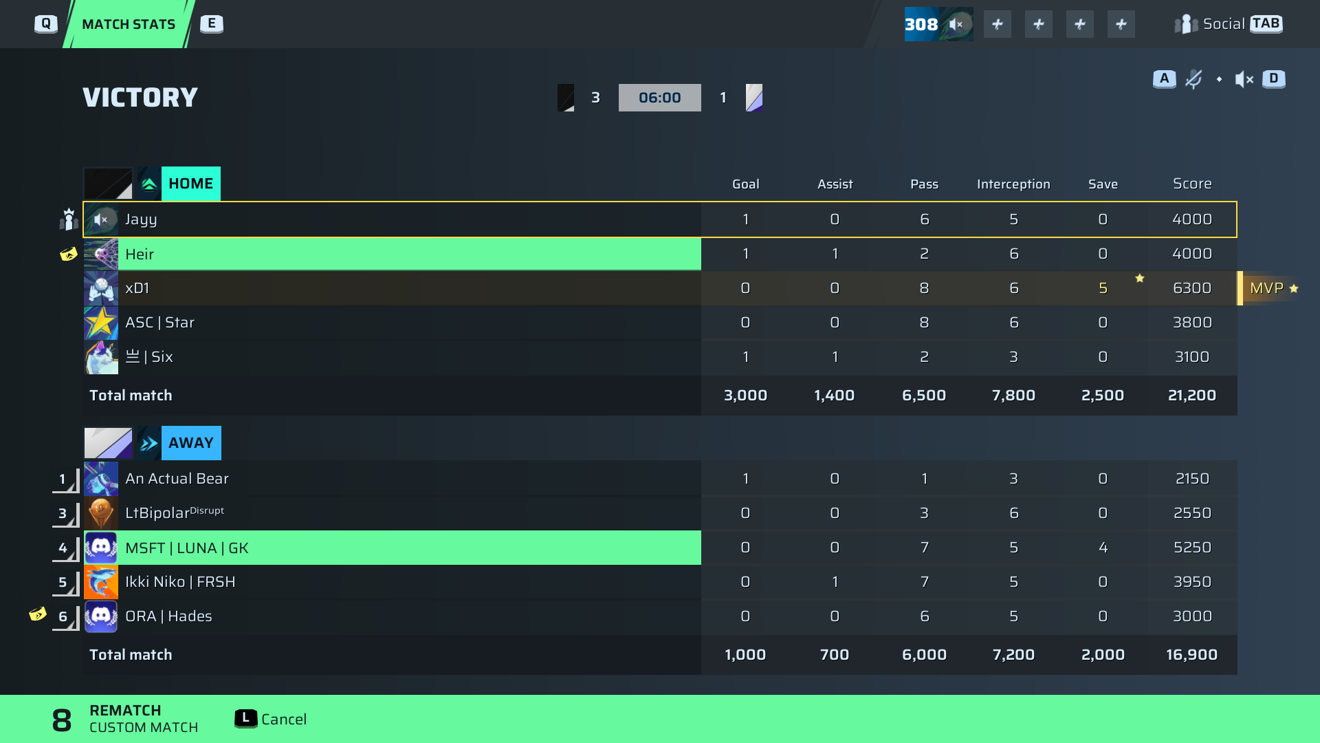 Spliff is telling you right now, the MVP was none other than xD1 in goal for Void Development, delivering a jaw-dropping 5 saves and an overwhelming score of 6300. This GOAT #127 goalkeeper controlled the game with 8 passes and 6 interceptions, orchestrating the defense like a seasoned veteran. I say this with the utmost respect — if you want to win in the MRL playoffs, you better have a keeper like xD1, because nothing else on the pitch mattered more tonight. Without his heroics, Void Development might still be licking their wounds.