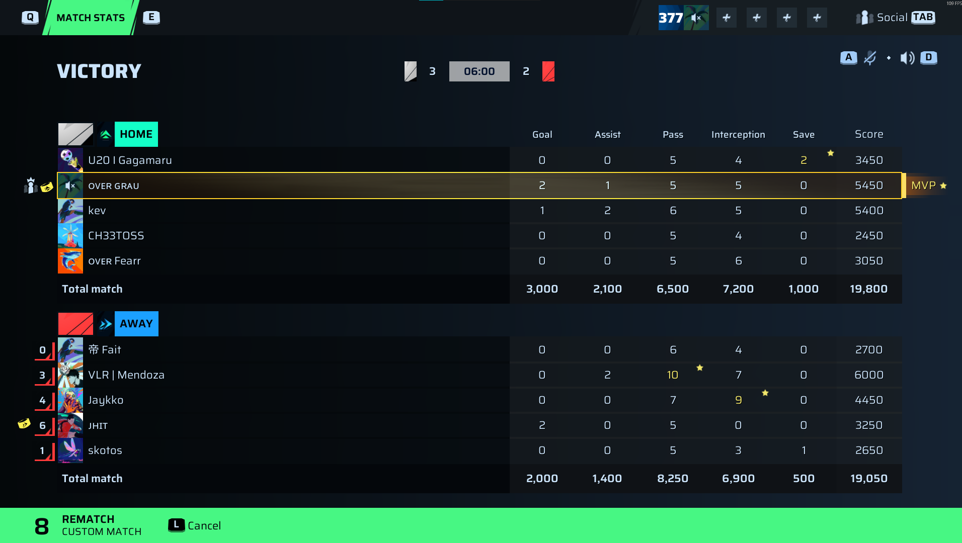 I suppose, reluctantly, we have to acknowledge OVER Grau as the man of the hour—two goals, one assist, a staggering 5450 score on a midfield masterclass that controlled every inch of the pitch. Grau’s creativity and clinical finishing were the finest individual performance this league has ever seen in a playoff decider. Meanwhile, KEV chipped in with a goal and two assists, but this was Grau’s show from start to finish. On the losing side, Mendoza’s two assists and 6000 score as the CDM were impressive, but it simply wasn’t enough.