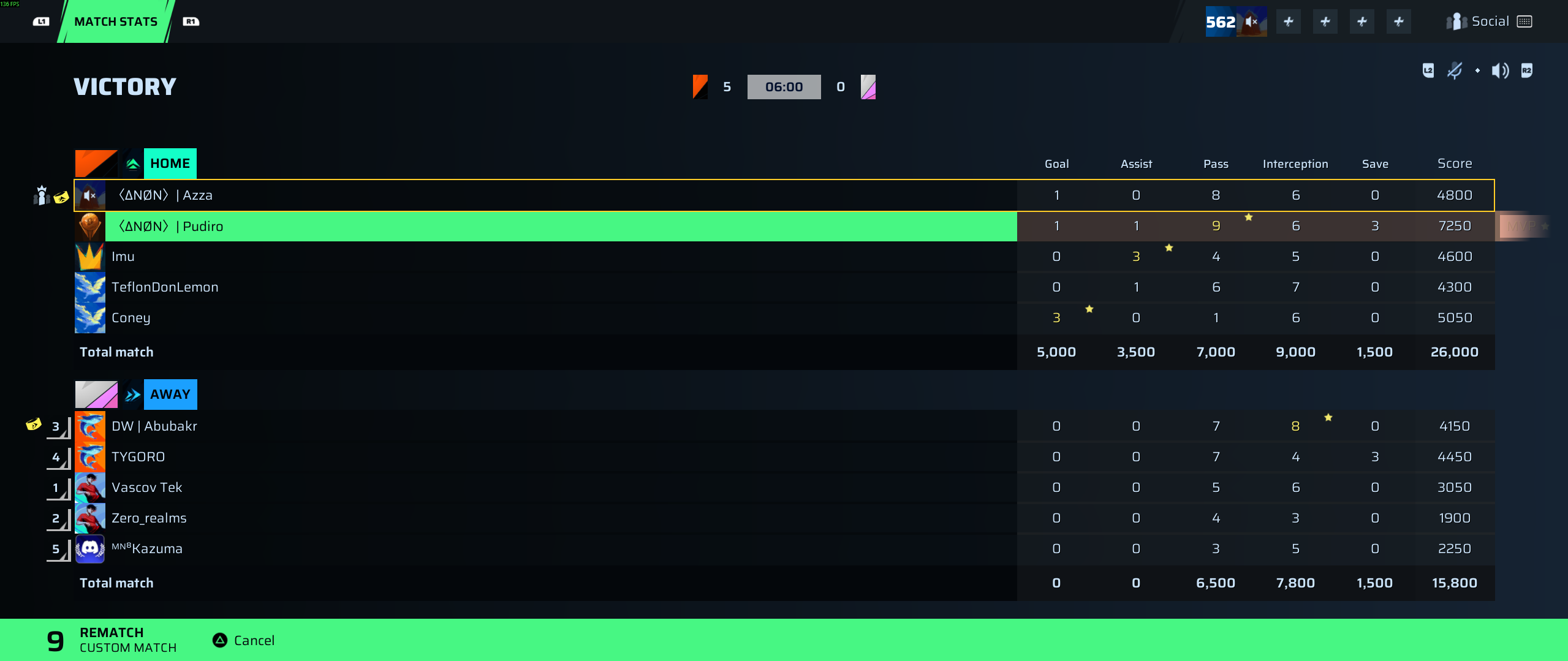 I suppose, reluctantly, we have to acknowledge 〈∆NØN〉| Pudiro as the game’s MVP and the architect behind this masterclass performance. The goalkeeper not only kept a clean sheet but also contributed offensively with 1 goal and 1 assist, alongside a staggering 9 passes and 6 interceptions, racking up a score of 7250. This is arguably the finest individual performance this league has seen in MRL Development playoffs—not just a netminder but a playmaker who defies positional expectations with precision and impact. Pudiro’s versatility and poise under pressure have elevated this team’s game to a level Cold Development simply could not match.