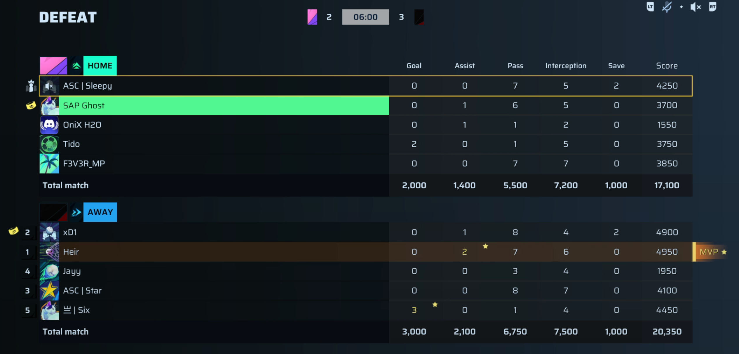 Stars Development, with Tido putting in his usual 2 goals but little else to support the offense, looked stagnant beyond that, relying too heavily on individual brilliance while Void’s team play was simply superior. Sleepy in goal had a respectable 2 saves but was under siege and couldn’t stem the tide as Void’s xD1 goalkeeper answered with 2 saves and even an assist, showing he’s more than just a last line of defense. Void’s balance from midfield through to attack, led by the tactical savvy of Heir and the finishing of Six, exposed Stars’ defensive cracks and lack of secondary scoring options. Stars Development need to rethink their defensive strategy and squad depth if they want to survive game 6, because right now their backs are against the wall.