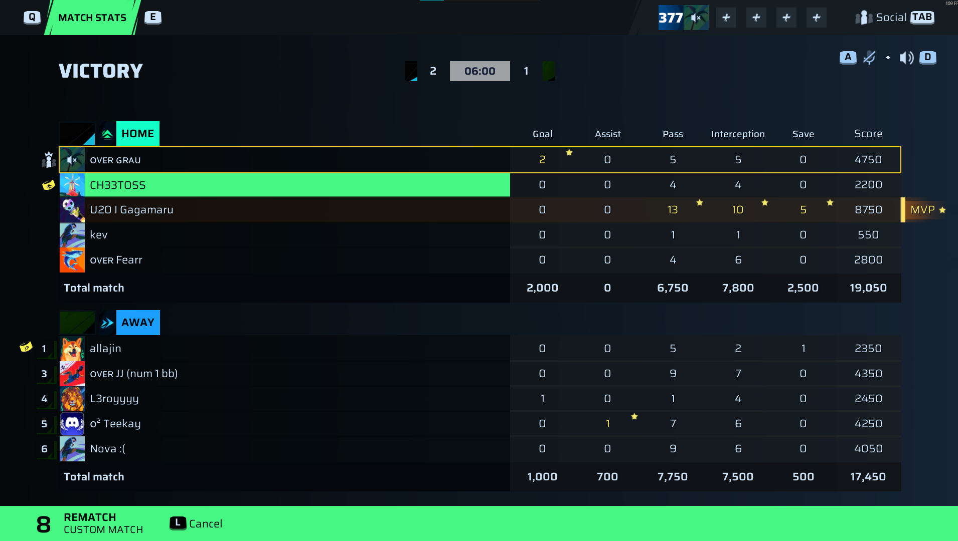 I suppose, reluctantly, we have to acknowledge U20 I Gagamaru as the MVP of this game—his goalkeeping stat line was impeccable with 13 saves and 10 interceptions, earning him a massive 8,750 score. This is the kind of lock-down performance that separates mere good players from true legends, especially in a semifinal where every save counts like gold. Without Gagamaru’s heroics between the sticks, For the Fans might have been gashed wide open by Stars’ attack. He is showing why he’s sitting comfortably in GOAT #8 territory, proving once again that goalkeepers can steal the spotlight.