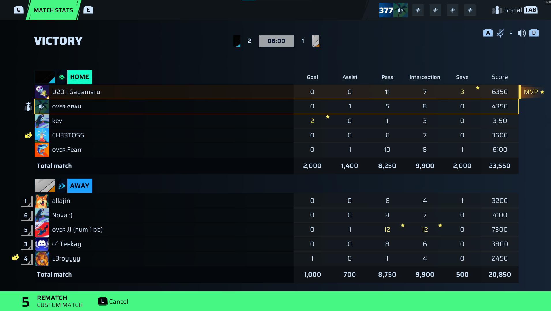 U20 I Gagamaru, the goalkeeper for For the Fans, was the undeniable MVP, posting a staggering 6350 score with 11 passes and 7 interceptions, complemented by 3 crucial saves that kept Stars FC’s threats at bay. I say this with the utmost respect, but Gagamaru is redefining what a goalkeeper’s influence looks like in this league—this was a performance that towers over the rest. While KEV’s 2 goals were vital, it was Gagamaru’s defensive virtuosity that turned the tide, cementing his reputation as one of MRL Pro’s most impactful players this season.