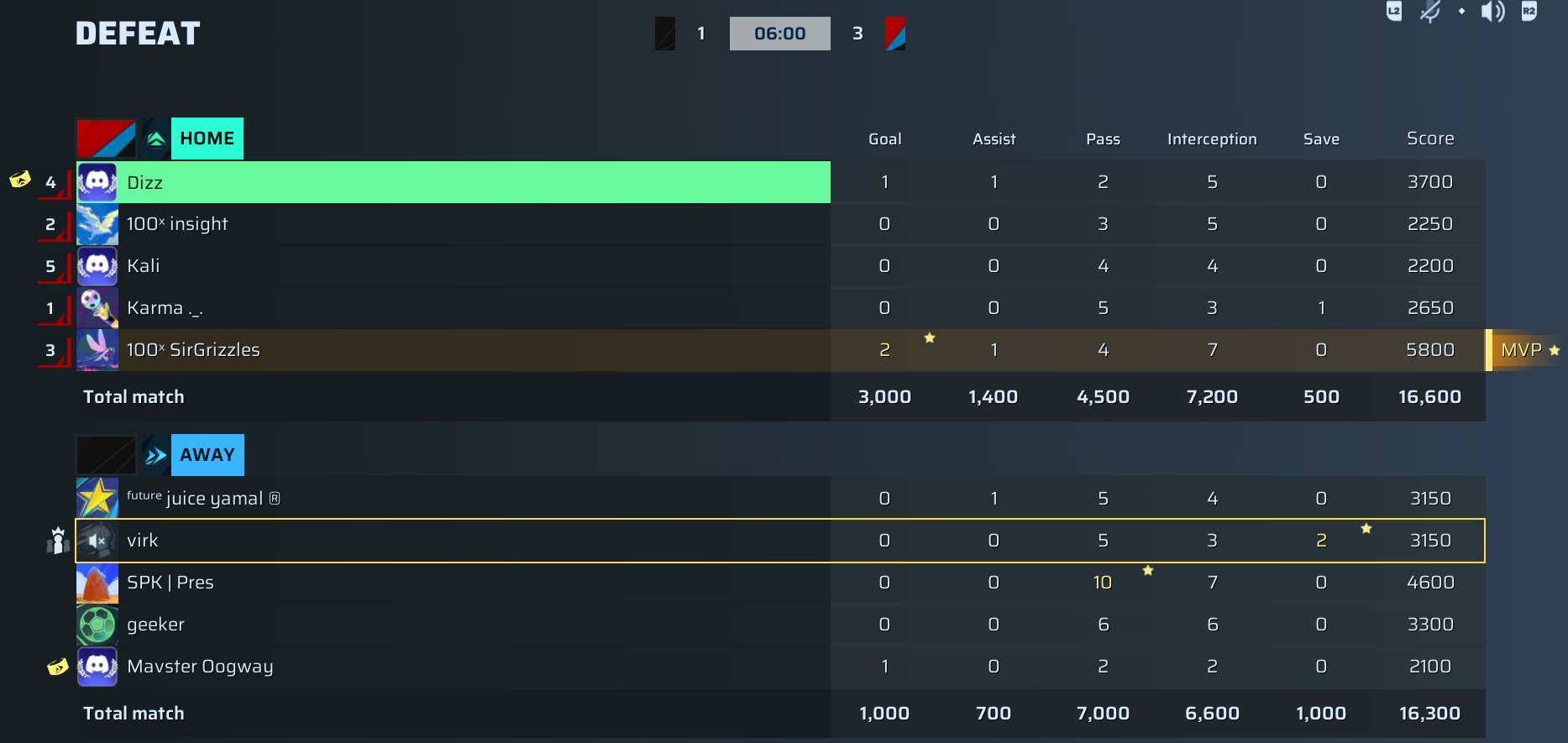 I suppose, reluctantly, we have to acknowledge the undeniable supremacy of 100x SirGrizzles, the central attacking maestro for Pretty Kittys. This man dropped 2 goals and 1 assist, racking up 5800 score points, yes 5800, with 4 passes and 7 interceptions—an all-around dominance on the pitch. This is the finest individual performance this league has seen in a MRL Pro playoff game this season, bar none. SirGrizzles didn’t just score; he orchestrated, he defended, and he dominated every blade of grass he touched. If you think this performance was anything less than legendary, Spliff is telling you you’re simply not paying attention.