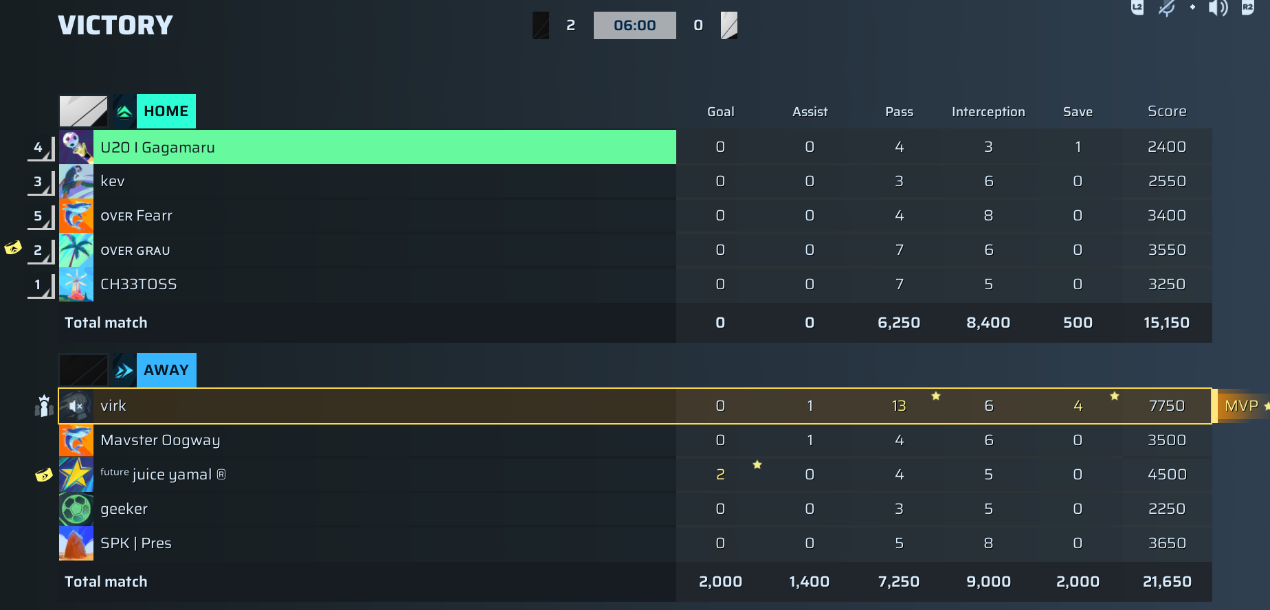 I need somebody to explain how virk, the goalkeeper for Cold and designated MVP, put on what might be the finest individual performance this league has ever seen from a keeper in a finals match. With a jaw-dropping 7750 score, he recorded 13 passes, 6 interceptions, and 4 saves, plus an assist to juice yamal’s opening goal—jaw-dropping for a keeper in such a high-stakes game. For a player ranked #38 on the GOAT leaderboard with zero goals but crucial vision and control, virk proved that defense wins championships, and he was the literal backbone of Cold’s victory. An MVP performance that commands respect, no matter how much For the Fans fans hate to admit it.