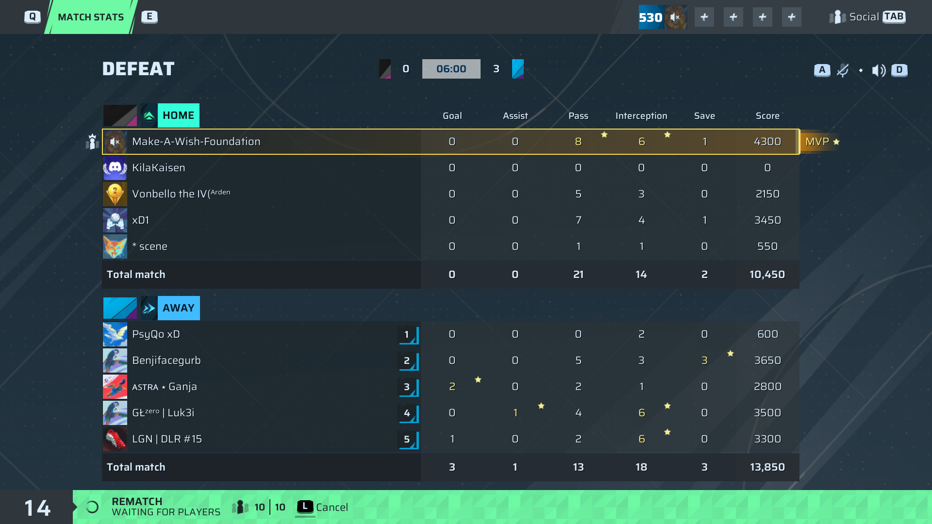 Make-A-Wish-Kid🐐#79 Goalkeeper | 0 | 0 | 8 | 6 | 1 | 4,300 | ✗ No |