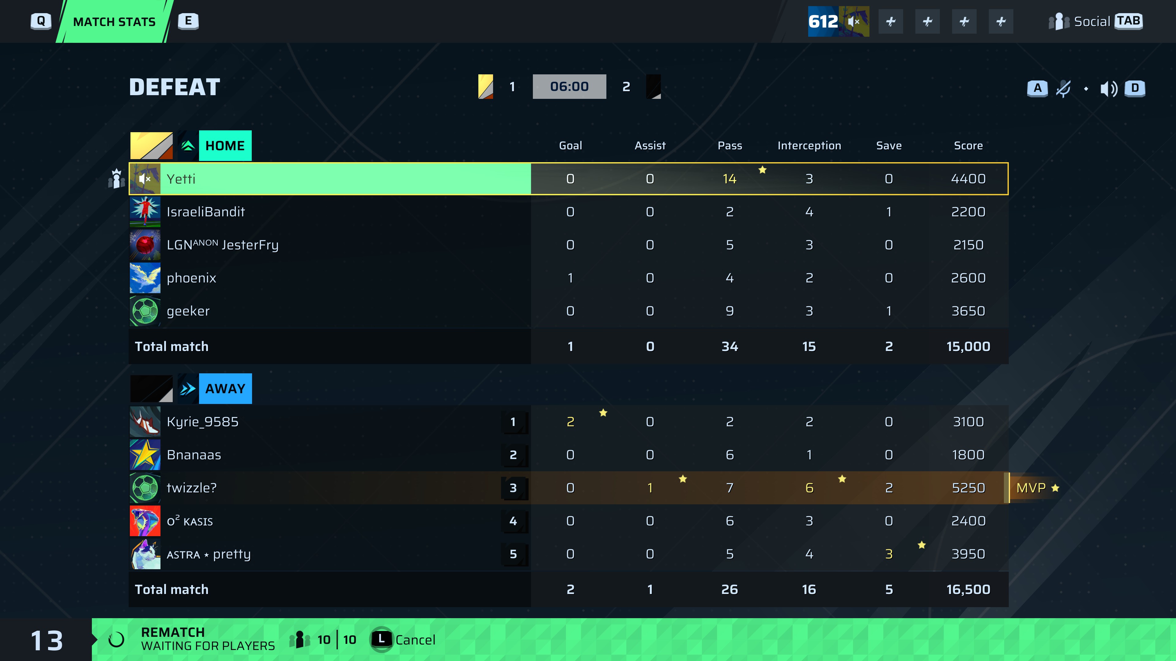 twizzle?🐐#199 Defense⭐ MVP | 0 | 1 | 7 | 6 | 2 | 5,250 | — |