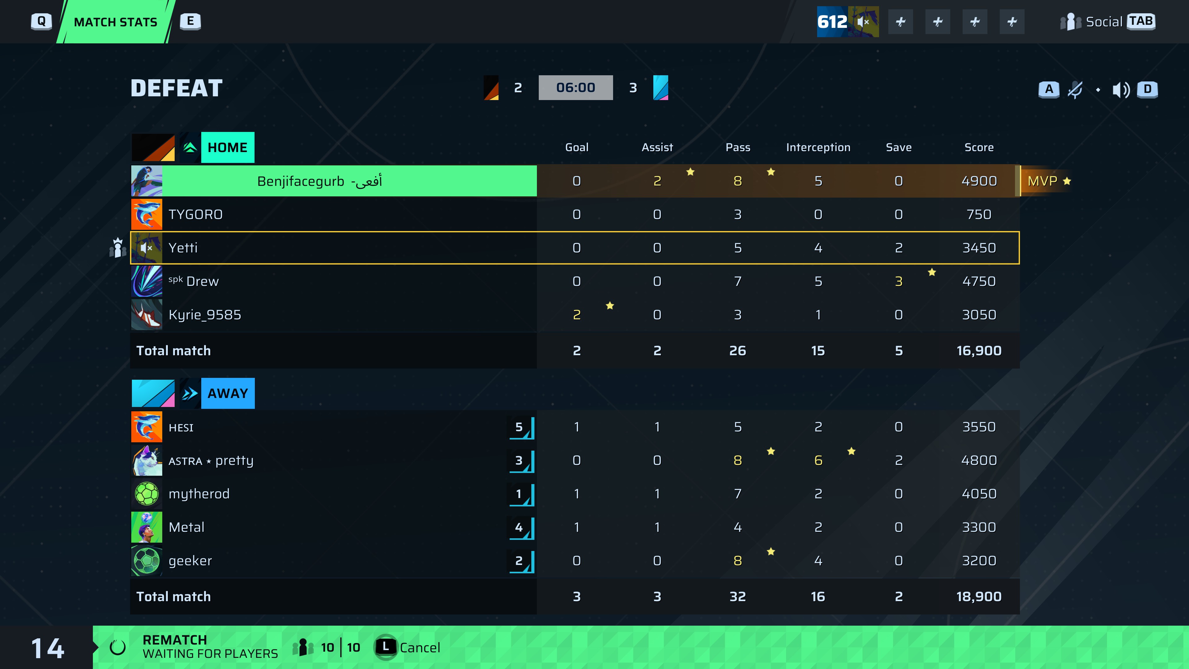 Kyrie_9585 Striker | 2 | 0 | 3 | 1 | 0 | 3,050 | — |