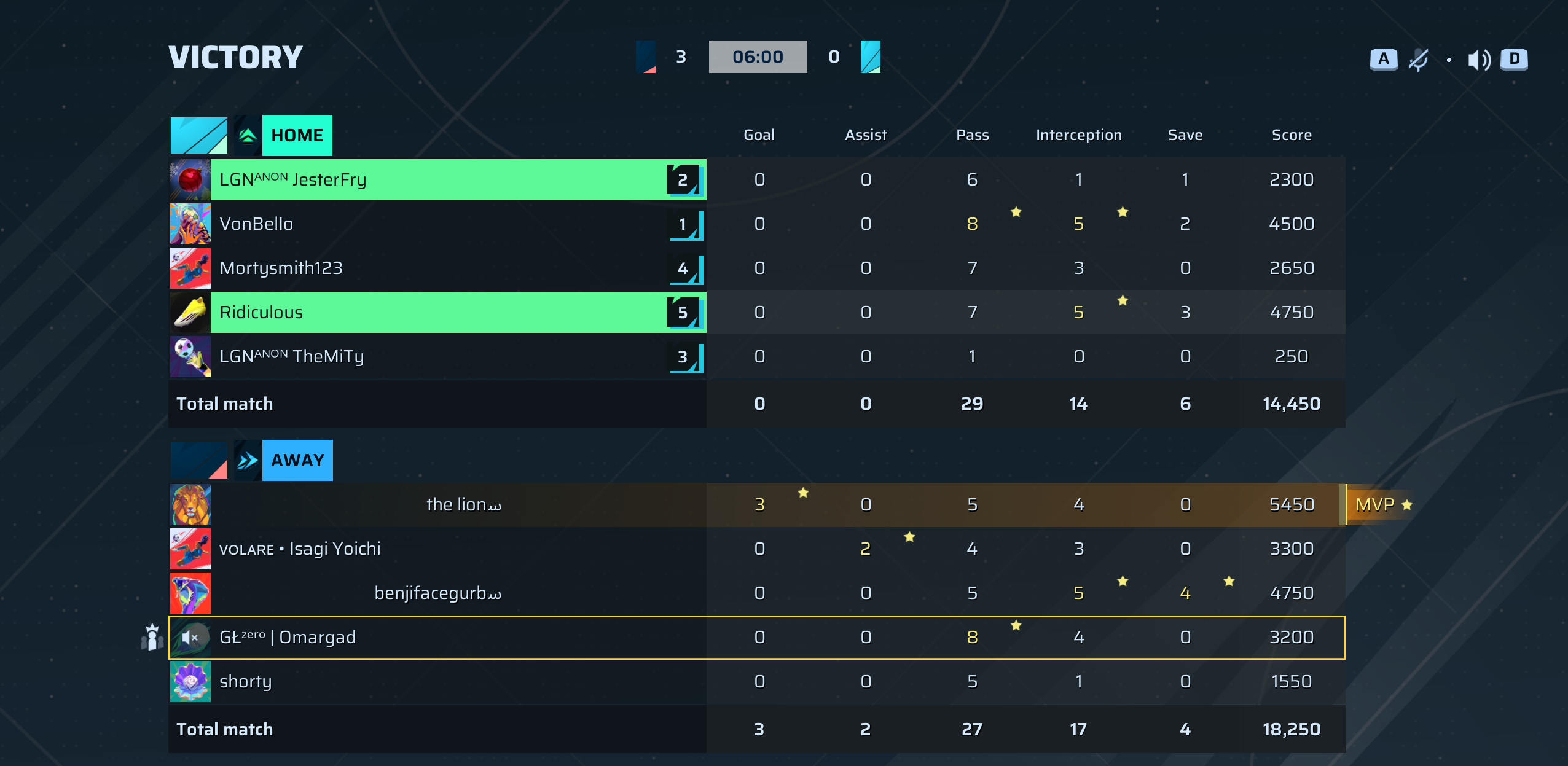ᴠᴏʟᴀʀᴇ • Isagi Yoichi🐐#60 Striker | 0 | 2 | 4 | 3 | 0 | 3,300 | — |