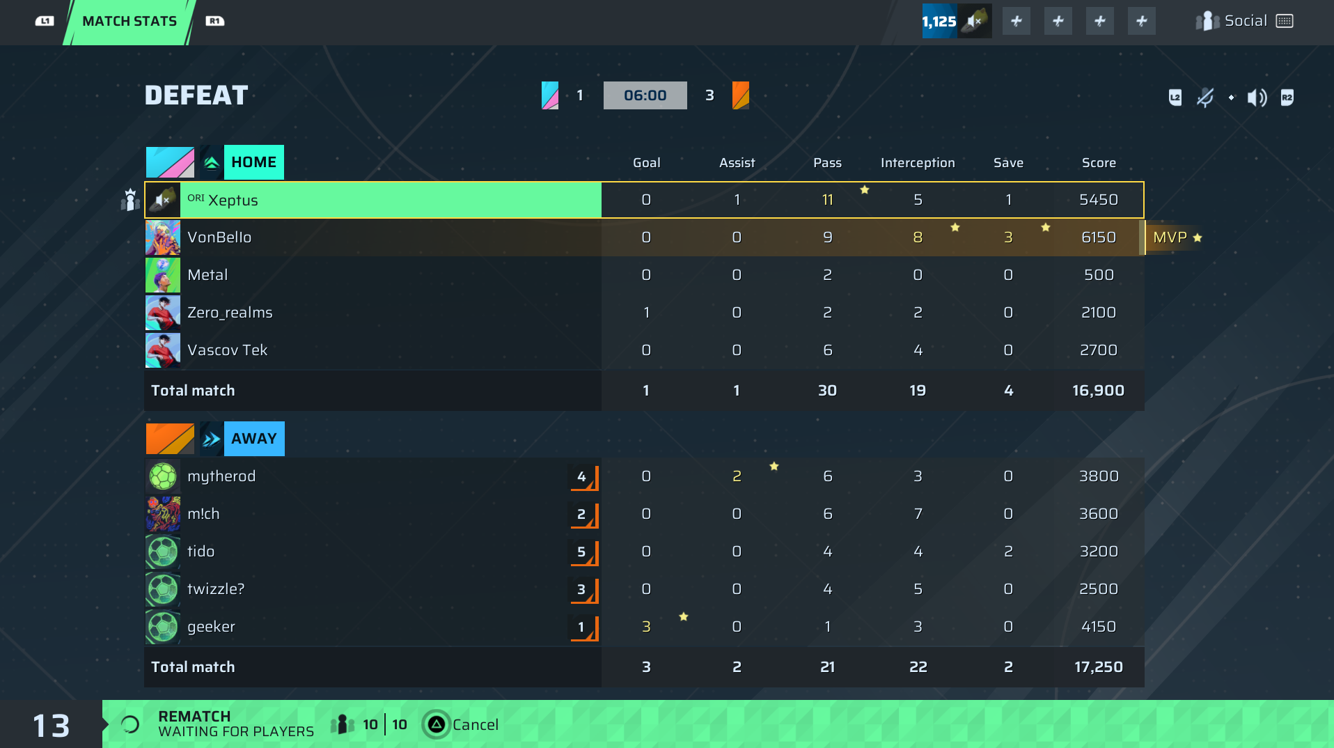 VonBello🐐#62 Goalkeeper | 0 | 0 | 9 | 8 | 3 | 6,150 | ✗ No |