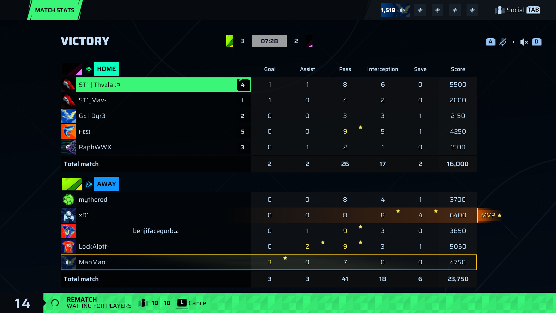 xD1🐐#119 Goalkeeper⭐ MVP | 0 | 0 | 8 | 8 | 4 | 6,400 | ✗ No |