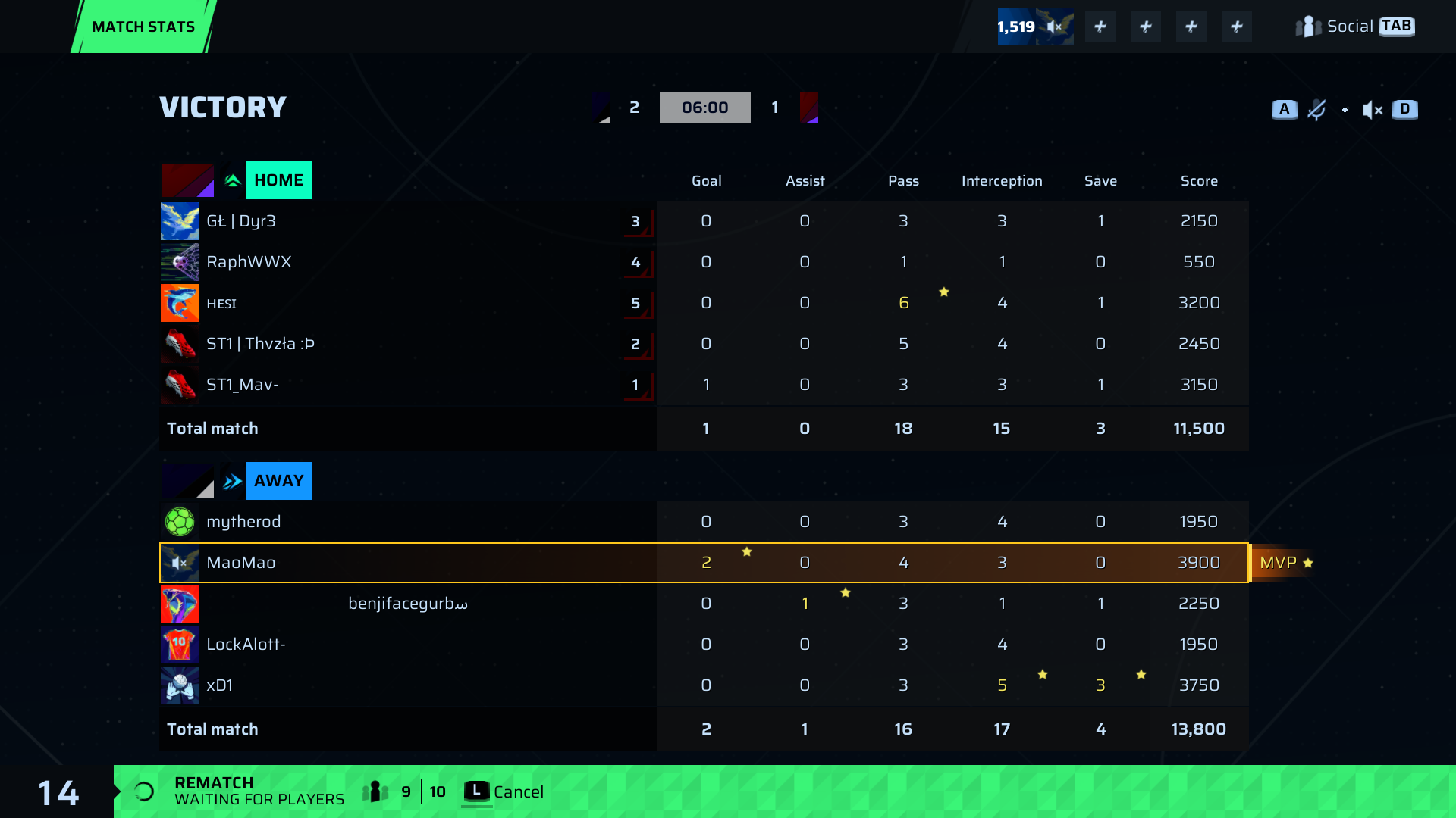 MaoMao Striker⭐ MVP | 2 | 0 | 4 | 3 | 0 | 3,900 | — |