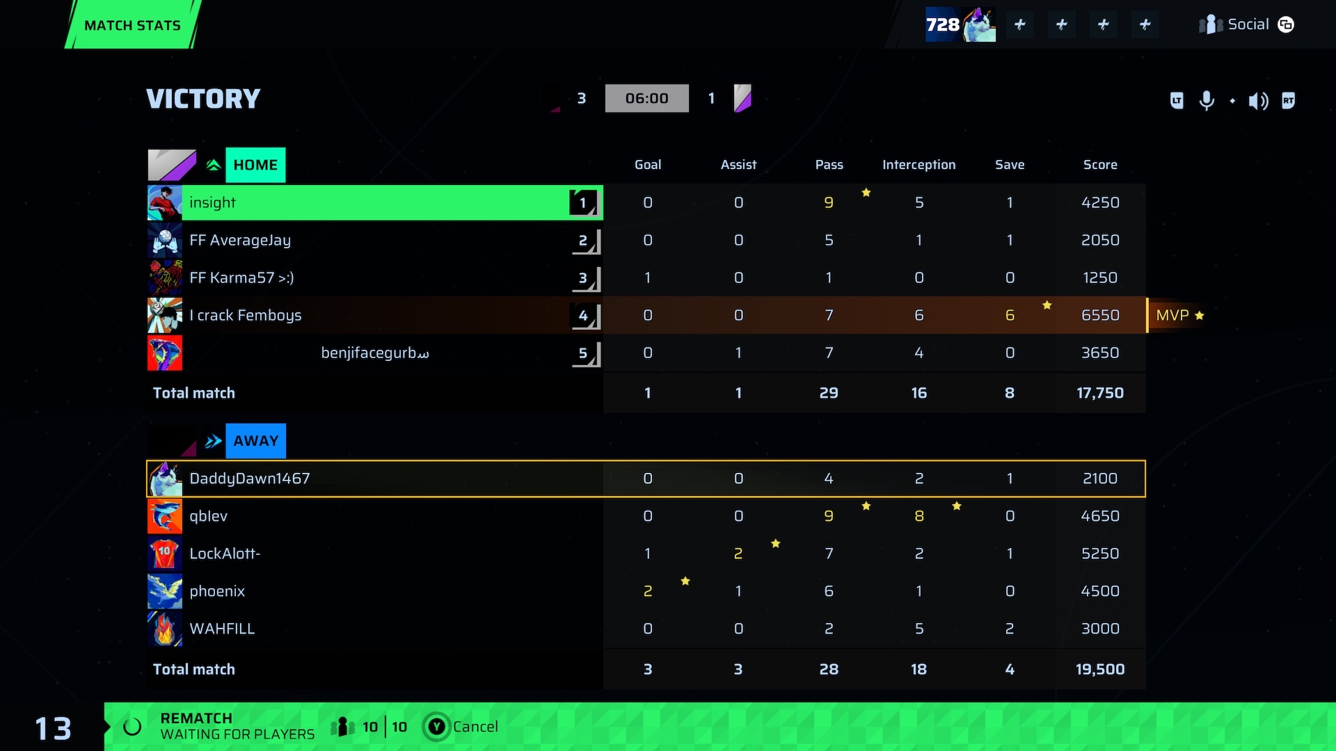 FF AverageJay🐐#216 Goalkeeper | 0 | 0 | 5 | 1 | 1 | 2,050 | ✗ No |