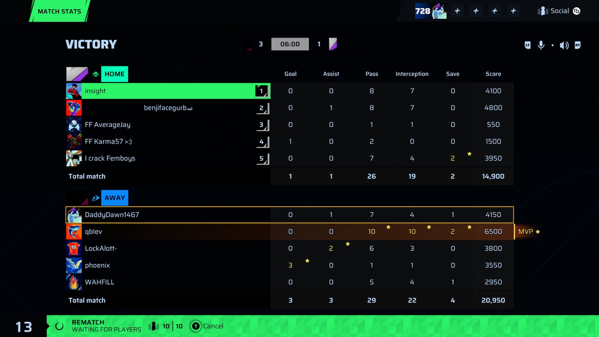 FF AverageJay🐐#216 Goalkeeper | 0 | 0 | 1 | 1 | 0 | 550 | ✗ No |