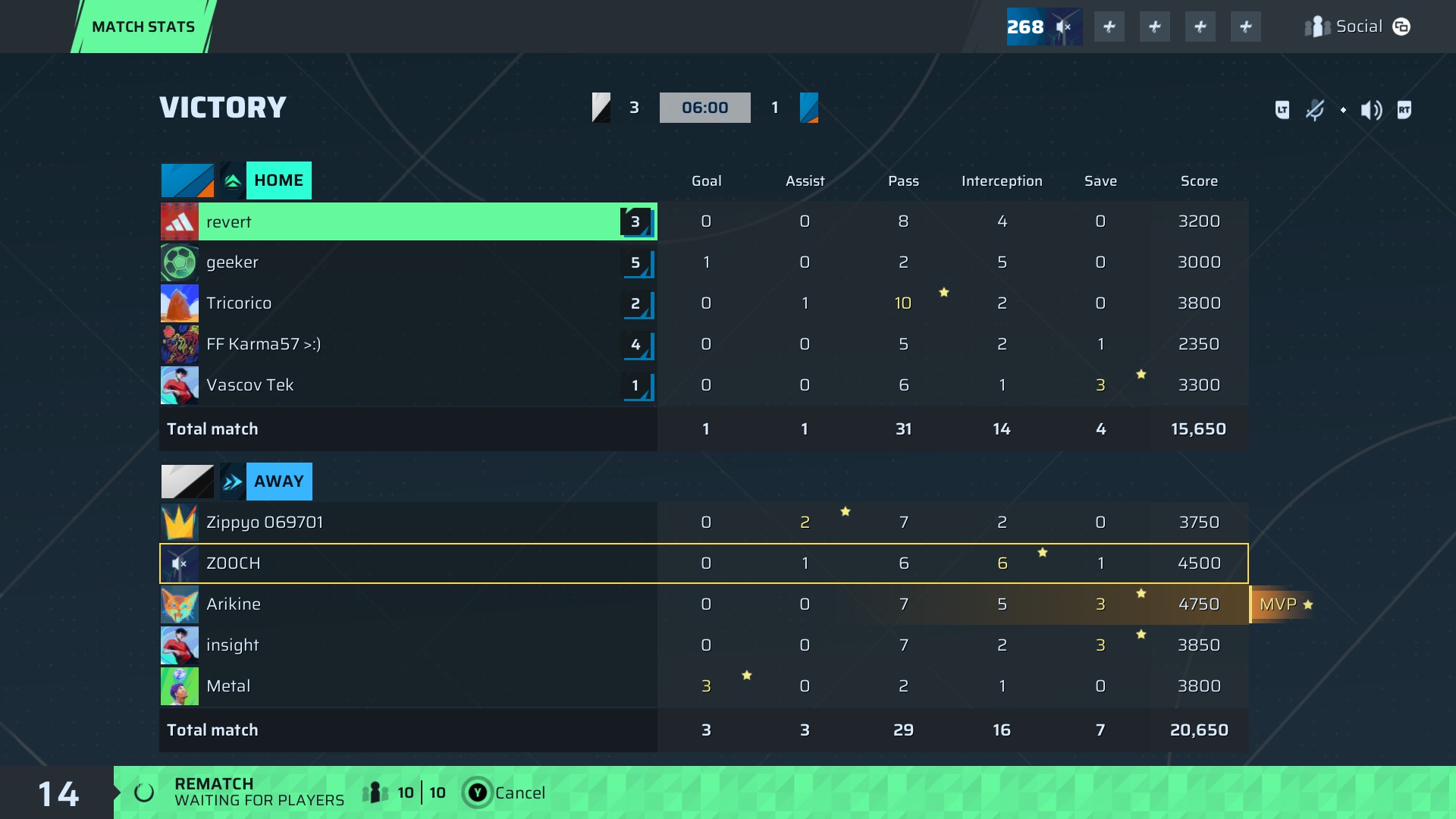 Arikine🐐#229 Goalkeeper⭐ MVP | 0 | 0 | 7 | 5 | 3 | 4,750 | ✗ No |