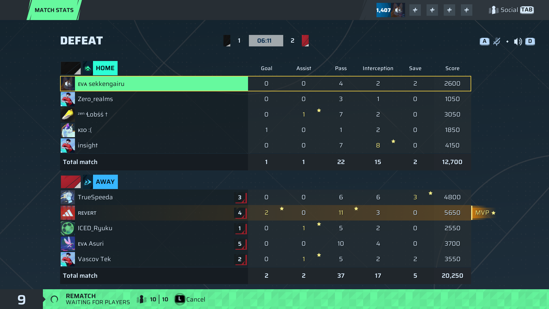 ᴇᴠᴀ sekkengairu Goalkeeper | 0 | 0 | 4 | 2 | 2 | 2,600 | ✗ No |