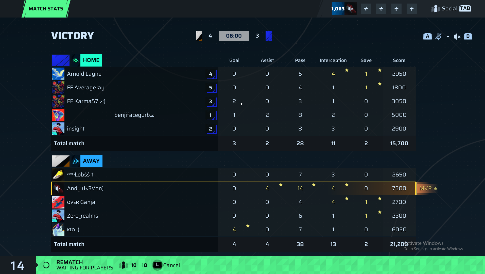Andy (I<3Von)🐐#225 CAM⭐ MVP | 0 | 4 | 14 | 4 | 0 | 7,500 | — |